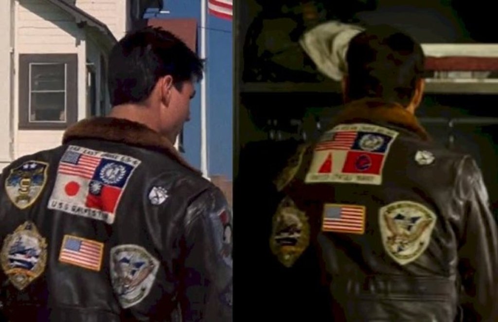 Find the differences. Because with a superficial glance the detail escapes. But on closer inspection the two jackets worn by Tom Cruise in the two editions of Top Gun the question is obvious. As several international newspapers report including The Guardian, the iconic aviator jacket worn by Pete Maverick in 1986 had a patch on its back that included the flags of Japan and Taiwan. In the first trailer for the new movie it looked like the jacket design had been changed. And that the two flags had been replaced with random symbols. Geometric figures without of any meaning. Impossible not to think about it.