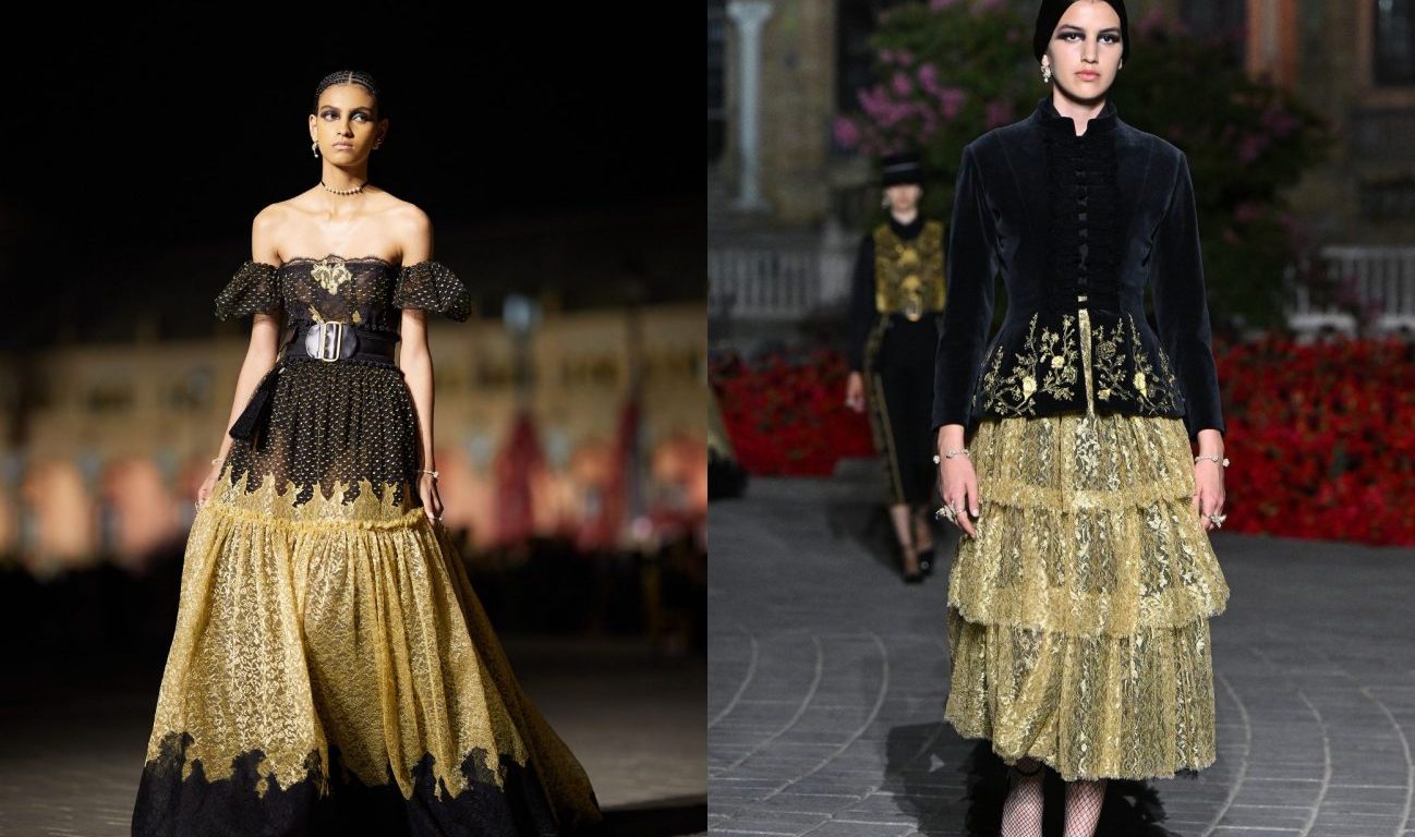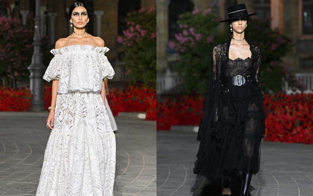 The House of Dior maintains deep ties with Spain culture and the “Crucero Collection” 2023 celebrates this ancient friendship through handcrafted clothes that include fabrics crafted according to local techniques. Hence the presence of lace of various shapes, mantillas bordered with fringes, and embroidered dresses.