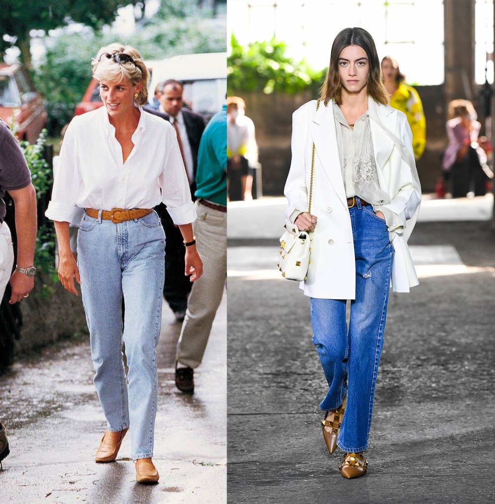 A winning pair, always and forever. Plus shirt jeans (better yet white) is so iconic that it never goes out of fashion. Thanks to the small details it can be elevated, to make it even more personal and elaborate. Diana yesterday, like Valentino today, pair them with a brown leather belt and flat pendant shoes. Loafers for the princess, pointed dancer for summer 2021. When outfits are minimal, fabrics and accessories become the real protagonists. For this reason, the jeans, with a straight cut, must be of a supported canvas, which maintains the cigarette shape.