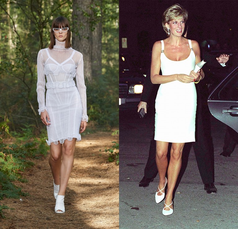 White mini dress, stylish was yesterday as is today. For summer 2021, Burberry offers a model made interesting by cuts and transparencies. Long sleeves and high tulle collar: this dress emphasizes the shapes giving character and femininity. Kind of like the Versace model worn by Lady Diana. Clean and minimal, with a perfect silhouette, combined with clutches and sandals of the same shade. Since the princess meets the emerging Italian designer, a splendid relationship of friendship and respect has been established between the two. Which will then allow the creation of different custom-made looks. The emancipated and seductive woman to whom the brand aspires is embodied by Diana, who becomes a real inspiring muse.