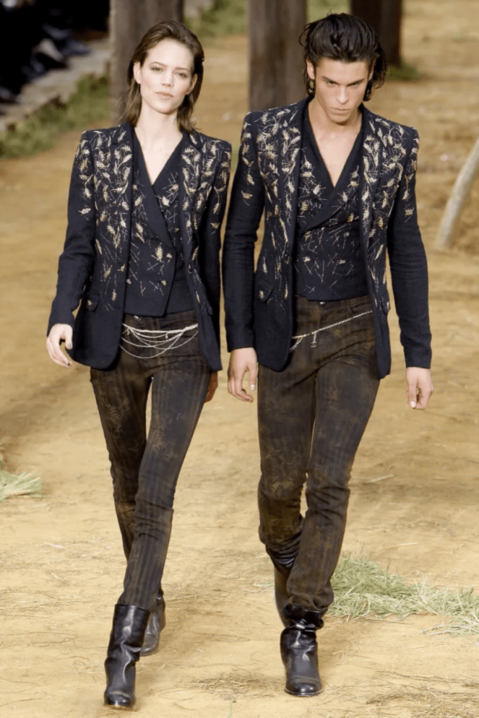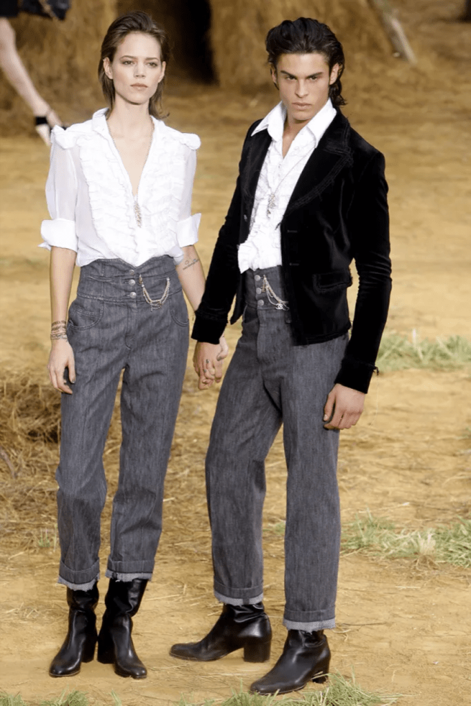 The term “cowboy” has finally achieved a permanent place in the world of fashion at the turn of the new century, leaving behind the many kitsch references and provocative clichés. In addition to the The House on the Prairie-inspired costumes worn by Chanel during the Pre-Fall 2014 show and the cowgirls “who can’t do without bows” from the SS10 collection, Karl Lagerfeld offered playful and overtly feminine interpretations of western aesthetics. Hedi Slimane was inspired by Californian fashion, but he made the cowboy one of the main suggestions for his reinvention of Saint Laurent, preferring an androgynous and sophisticated approach that defies any gender preconception. It was during his leadership that the Wyatt boot was developed, in which the boho-Losandian style known for its wide-brimmed hats, fringes, and oversized clothing was introduced.