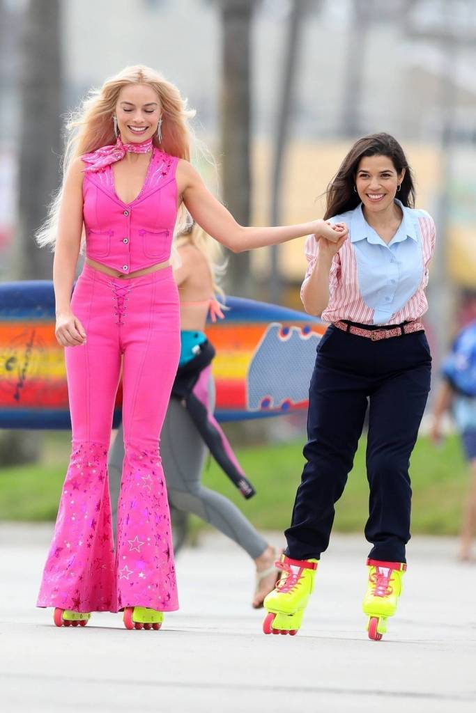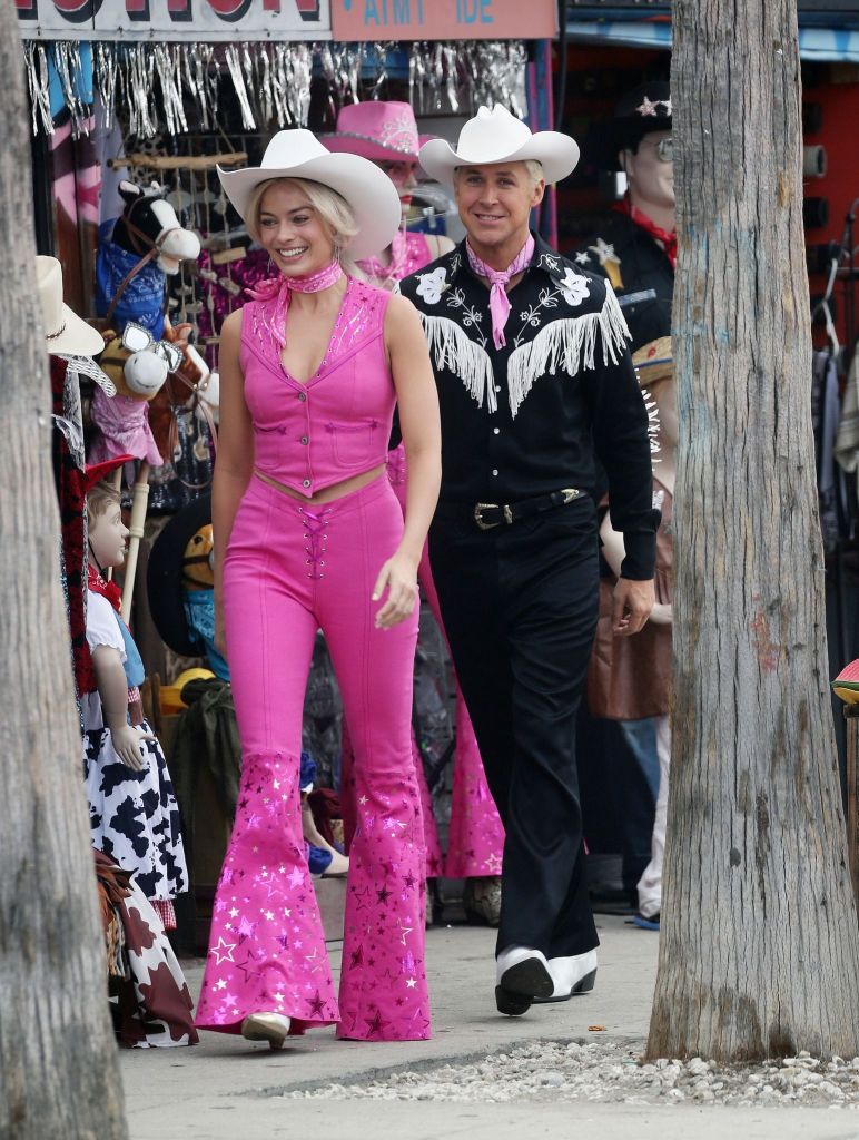 Pictures of Margot Robbie and Ryan Gosling dressed retro-kitsch cowboys, respectively, that were taken from Barbie’s set, quickly circulated online. The two blond leads of Warner Bros.’ live-action movie will bring the most recognizable variations of Mattel’s fashion doll to the screen, will let us in a reflective tale set in the plastic and painfully flawless world of “Barbieland.”