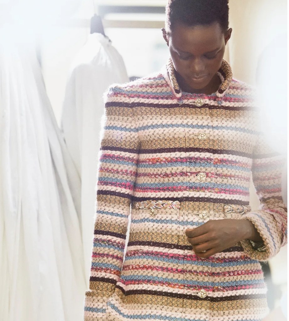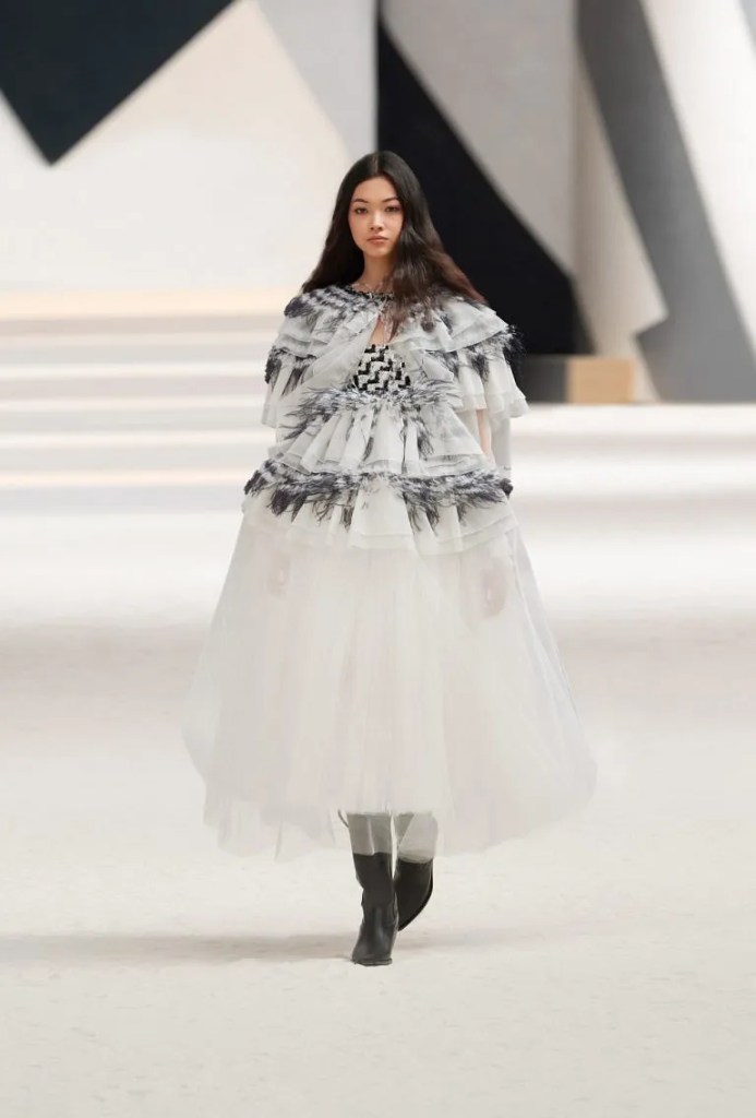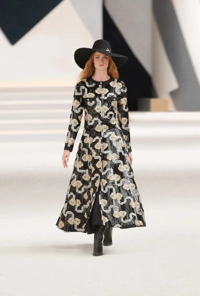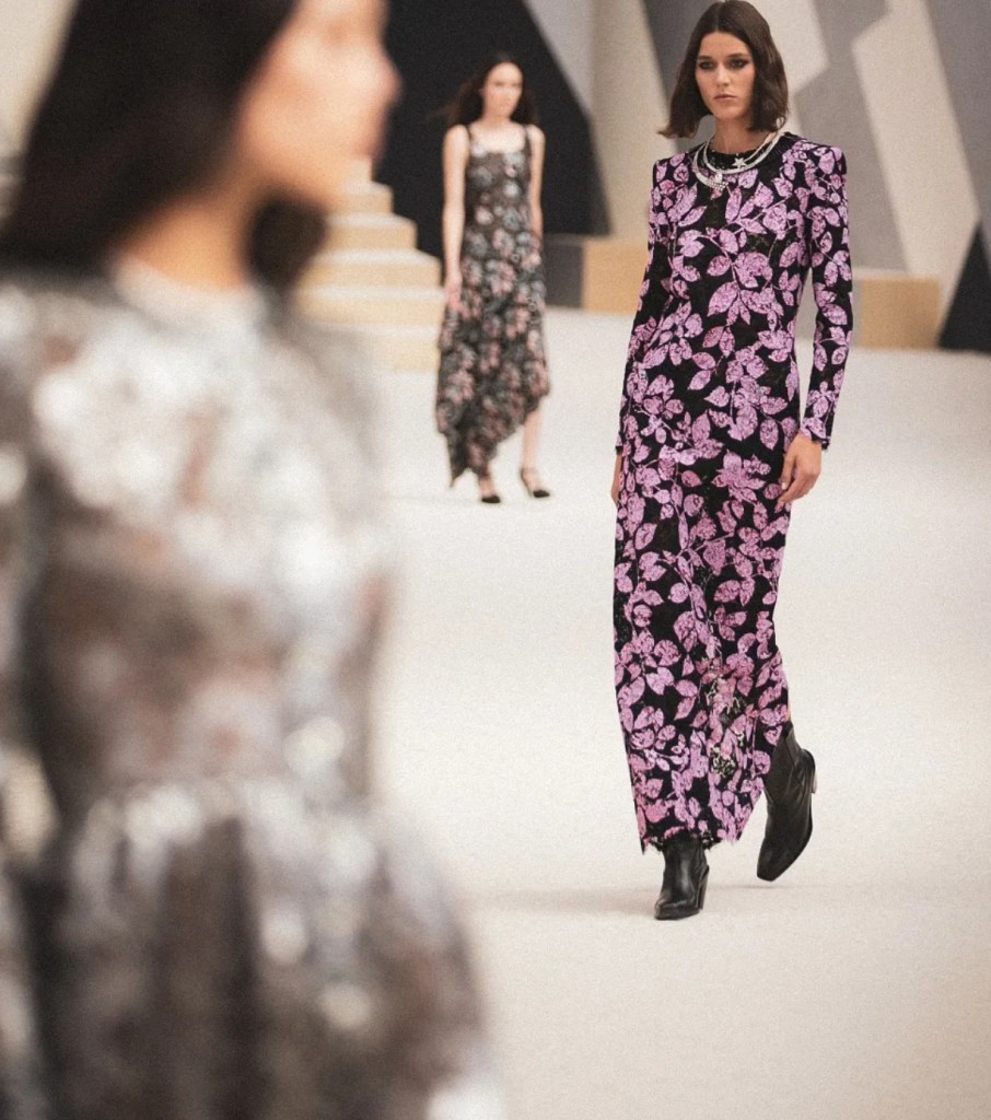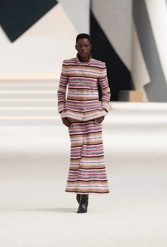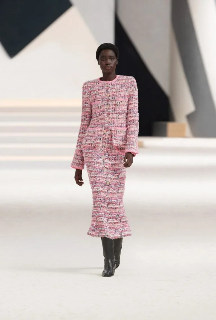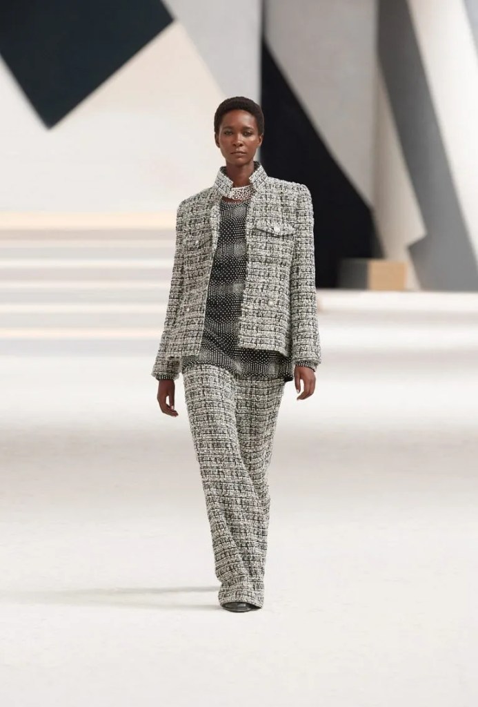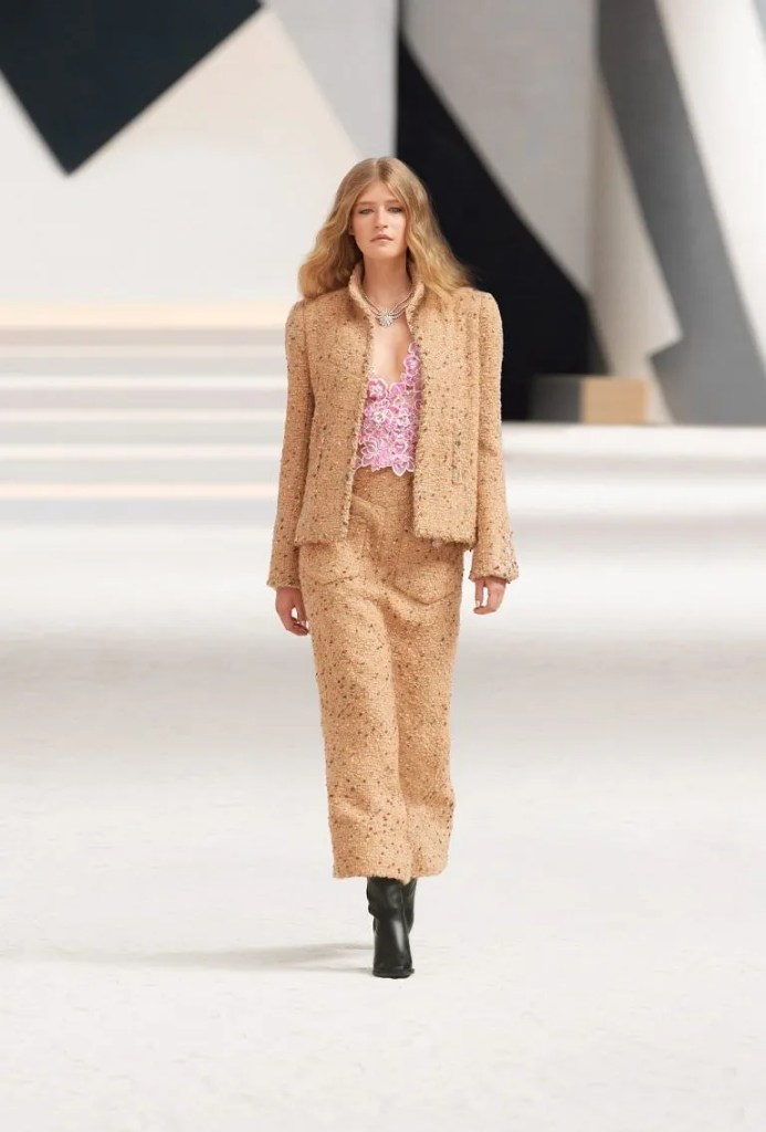 In questa stagione, la direttrice artistica Virginie Viard continua la sua esplorazione dell’iconico tweed della Maison, questa volta con gli occhi sulla silhouette degli anni ’30. La collezione è sostenuta da linee lunghe e magre, insieme a spalle forti.