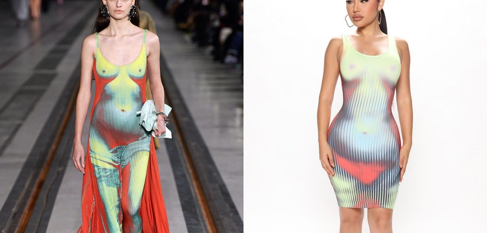 Fast fashion’s success is built on imitating fashion; the quicker this imitation happens, the more market trends that have formed from the seasons of fashion arrive and disseminate across society.The main issue is that outstanding designs are constantly being copied and turned into subpar copies of themselves. A obvious duplicate of one of the pieces from the collaboration between Y/Project and Jean-Paul Gaultier for the brand’s FW22 collection has recently been made available for purchase by Fashion Nova, which has put on sale a fitted sheath dress with a “thermal” print of a naked female torso. Just minutes after it debuted on the catwalk, the outfit went viral because it was a replica of a vintage Gaultier print that had been widely duplicated.In addition, the Spanish designer Sergio Castao Pea, who drew inspiration from Gaultier for his designs, claimed that a similar print, that of the naked dress created by Gaultier and Lotta Volkova, was a work of plagiarism.