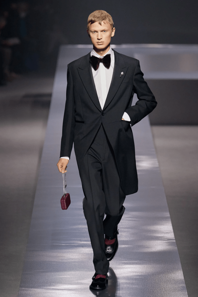 A topic that was extensively covered during the Prada FW22 collection presentation in a harsh indictment of casual wear, proposing clothing that “makes people feel important.” Prada revised its interpretation of the classic in the midst of volumes devoted to empowerment and, concurrently, an annulment of the male form (note the emphasis on shoulders and waist). Dior Homme, which maintained its pursuit of delicately modern formal attire with its FW22 collection through a delicate scale of grays and gentle hues, somewhat shared this scenario. Not that Silvia Venturini at Fendi did not accomplish the same thing with her FW22 presentation, which played with all the menswear staples and even went so far as to sketch a mock-up of a dandy in full Fendi garb at the end. Pier Paolo Piccioli even shown how a color scheme that features, and even praises, pink, can also convey a manly air of elegance. Even when moving away from designers and companies that are more associated with formal clothing, elegance asserts itself as a reference or, more specifically, as a monochrome or loosely stylish appearance. Even Rick Owens was obligated to comment on the idea of elegance because, although being obscene and filthy, it revealed an unexpectedly stylish attitude in some outfits. There is no question that low-waisted jeans will stick around for a while. But one might also make the same argument for the idea of elegance: it is still too early to create a timeless moment for it.
