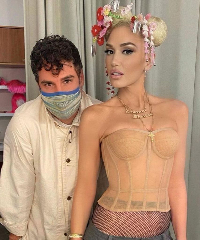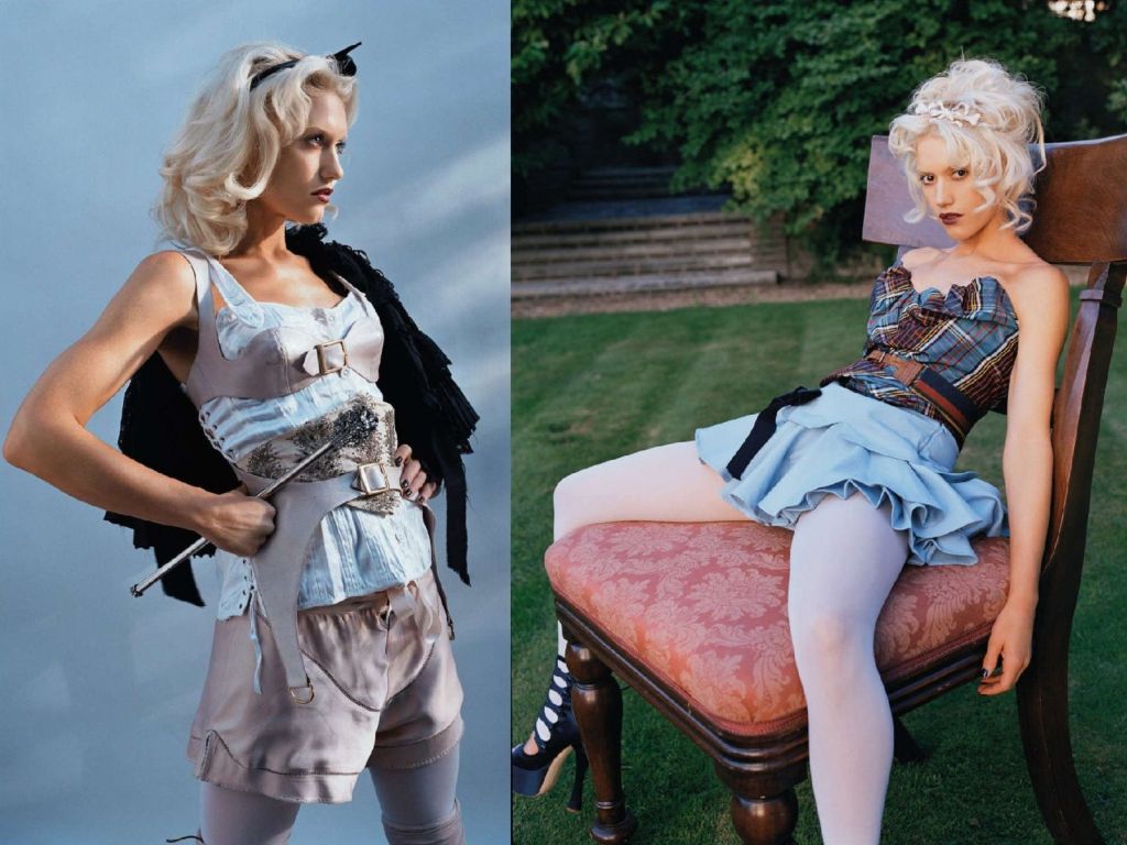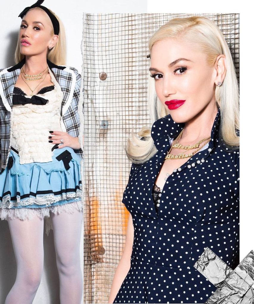The photos feature some of the singer’s most recognizable looks. She wears the blue dress with white polka dots from Don’t Speak again, as if it had only been a day, but it has actually been more than twenty years; she first dyes her hair blue and wears a plush bikini in the same color as she did on the red carpet of the 1998 MTV Video Music Awards; she then dresses in bright pink, as she did during the time of the album Return of Saturn; she chooses to keep her platinum blonde hair in the same Raffaella Carrà style as in The Sweet Escape, and she transforms into Alice in Wonderland like she did when she performed in front of a crowd with Harajuku Girls during the What You Waiting For?