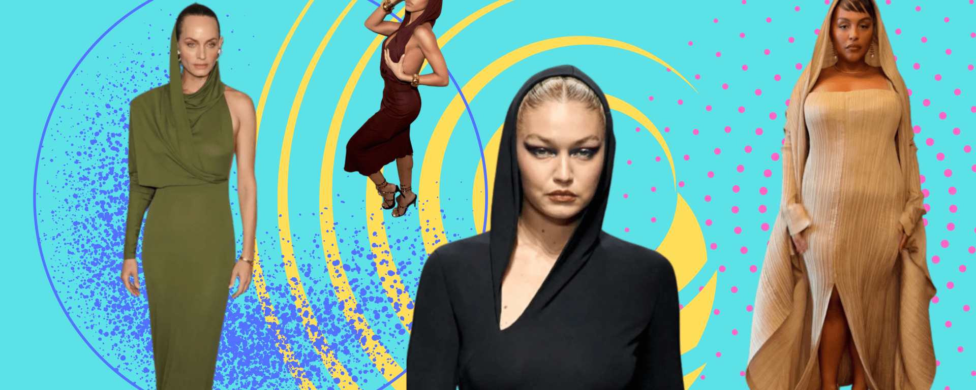Celebrities can no longer function without the hoodie dress thanks to its rediscovery by high-end brands. Paloma Elsesser has recently been seen wearing a vintage 1995 Issey Miyake cape with a pleated cape draped over the shoulders and around the face; Michaela Coel selected it by Ferragamo for the Los Angeles premiere of Black Panther: Wakanda Forever; and Bella Hadid alternated three different ones during the Fashion Trust Arabia Prize in Qatar, including, of course, an intriguing and enigmatic all-black one by Alaa. Who will give in to the hoodie dress’ enduring attraction as the next victim?