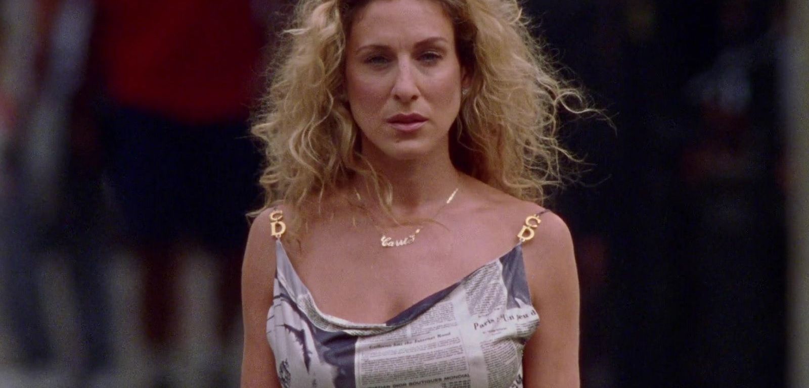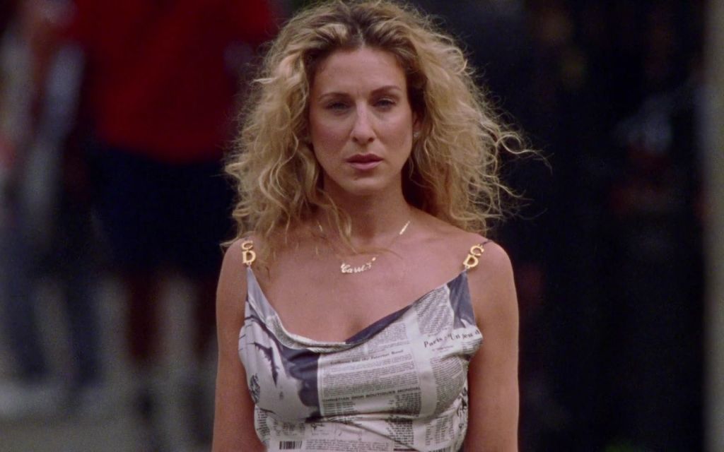 The fall 2000 ready-to-wear collection that John Galliano created for Dior, which was influenced by both the homeless people who slept on newspapers on the streets of Paris and the Vagabond Dances of the 1920s, where the wealthy dressed as the poor for fun, is responsible for popularizing the gazette print. The collection, which received criticism for stealing poverty, ended up being one of her most well-known works because of a well-known TV personality.In the third season’s episode number 17 titled What Goes Around Comes Around of Sex and the City, a light sheath dress with an asymmetrical cut, a plunging neckline, and two extremely thin straps adorned with a gold “C” and “D” was one of those designs. Carrie Bradshaw wore it during a pretty “sensitive” moment in which she really ambushes Natasha in an effort to apologize to her for upsetting her marriage to Big, according to costume designer Patricia Field. The apology was rejected, but those few minutes on screen were enough to establish the Dior dress as one of Carrie’s most recognizable looks ever. In fact, Carrie wore the dress once more in the sequel to Sex and the City (2010), ten years after it initially debuted.