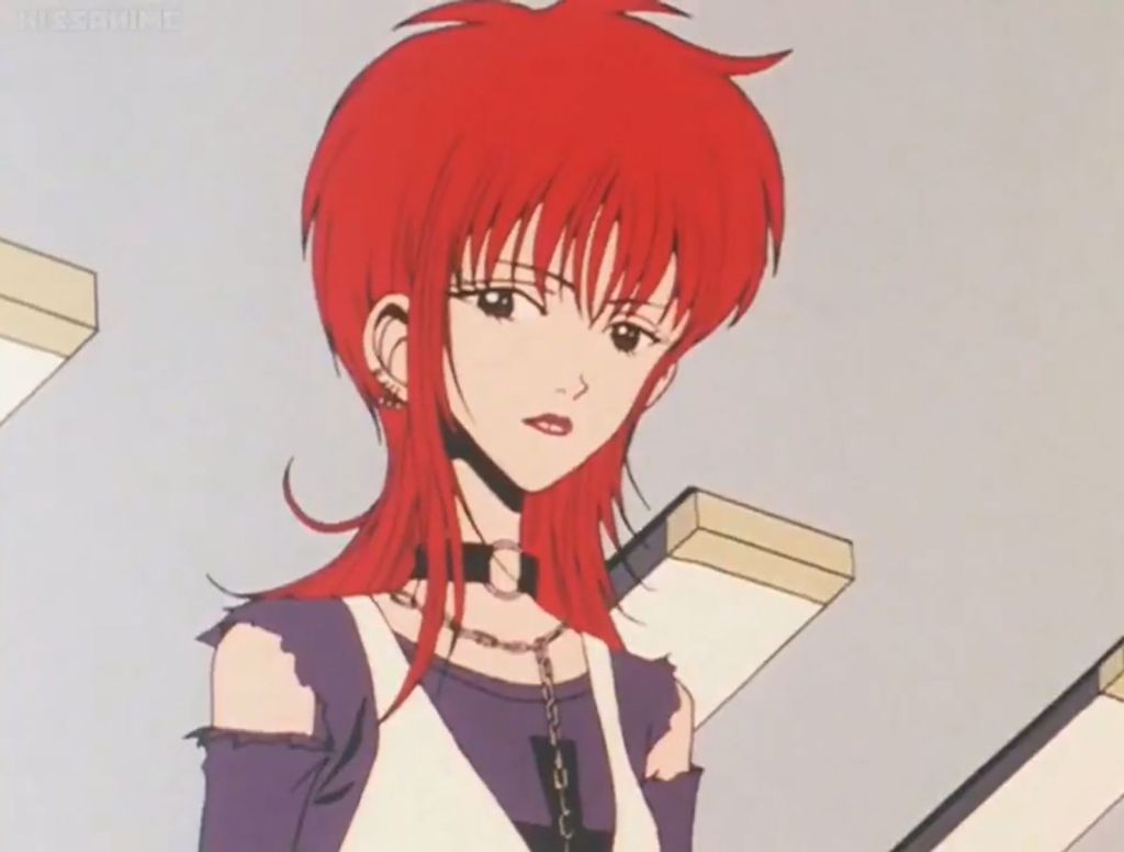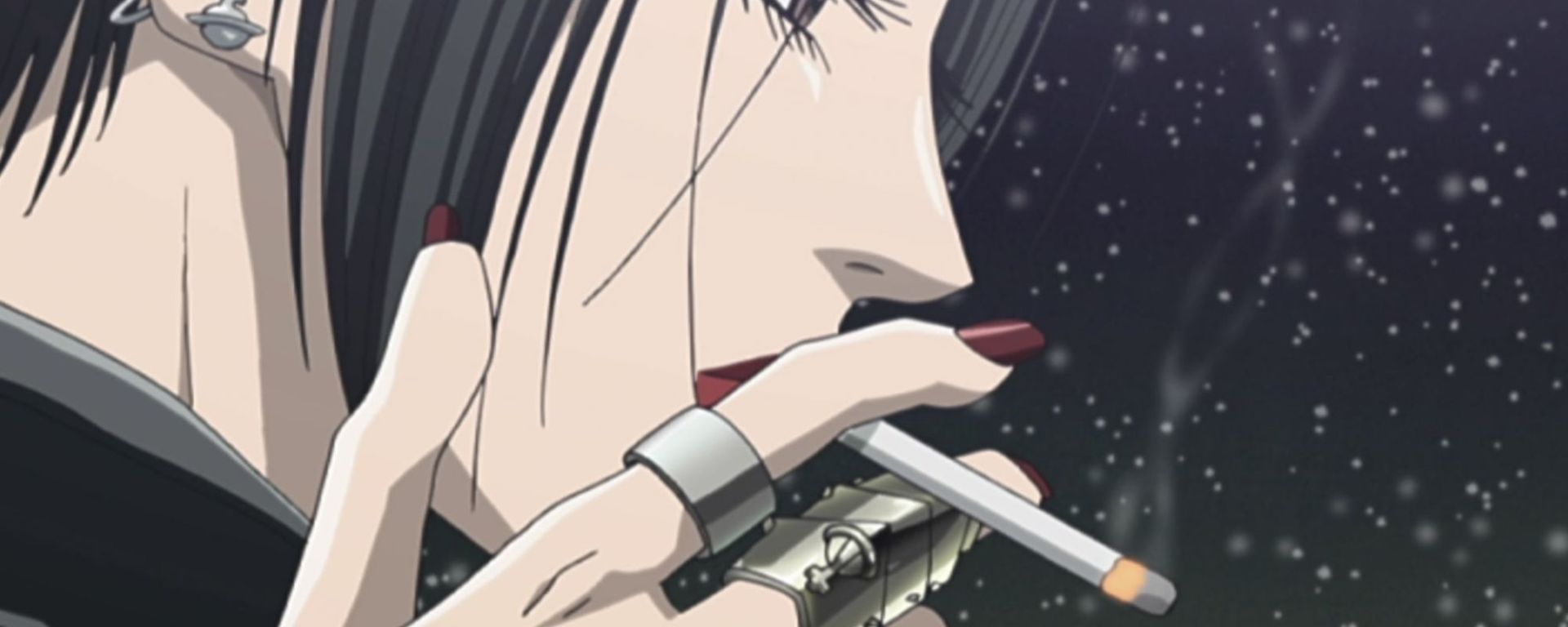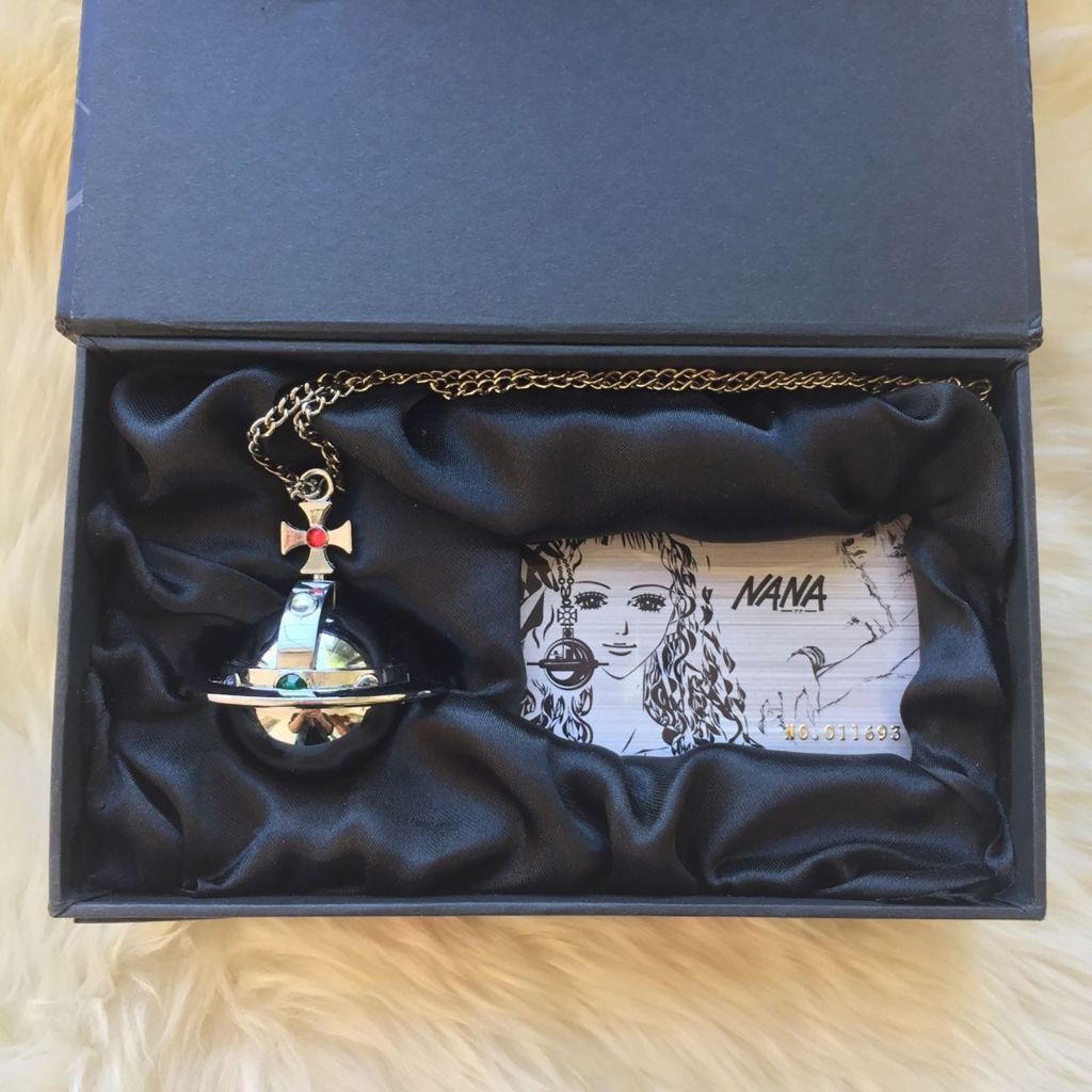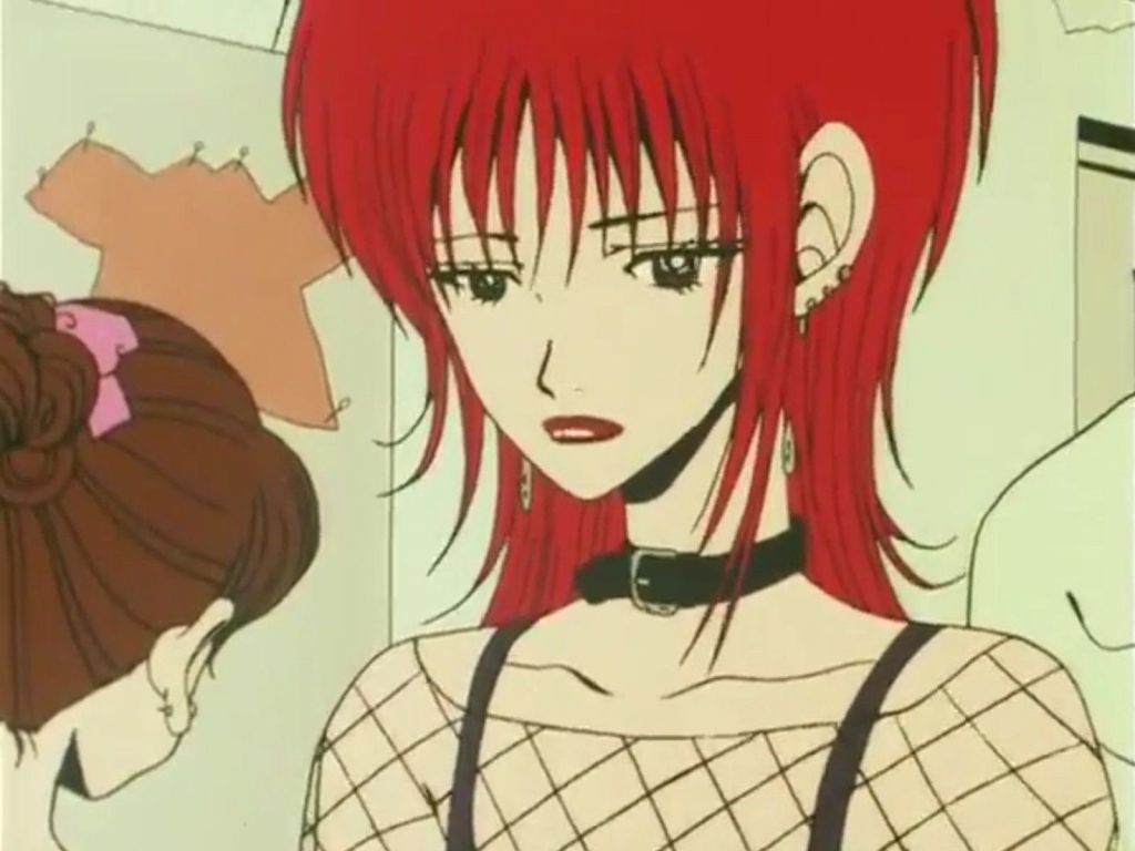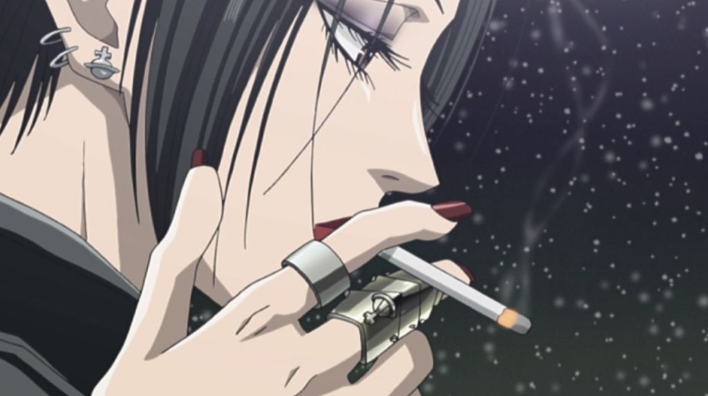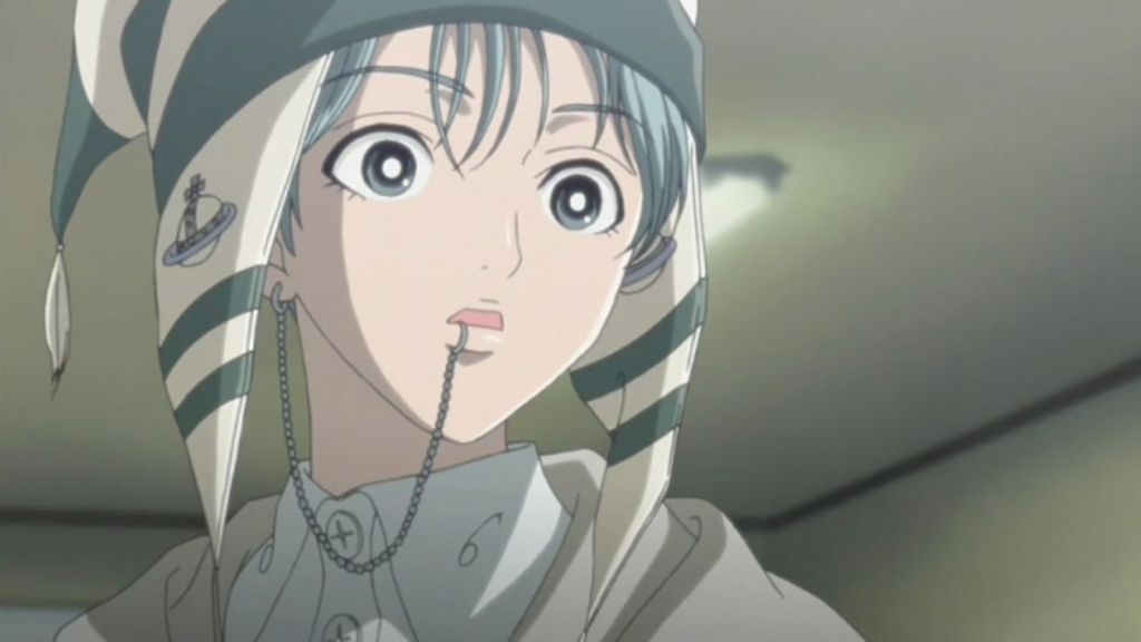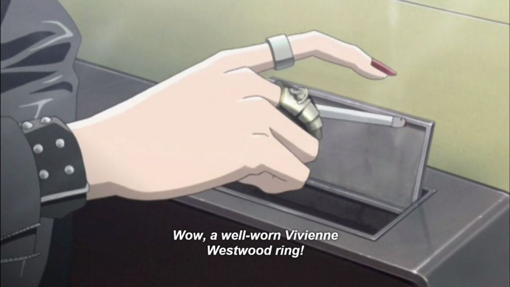 The “Armour Ring,” a massive silver ring that immediately gives us an idea of the rebellious character of the protagonist and has become the brand’s best seller as a result of the anime, is the accessory that catalyzes the attention from the very first scenes. Other English designer trademarks include earrings, chokers, and safety pins. Another remarkable item Shin, the bass player in Nana’s band, wears around his neck all the time is an orb-shaped lighter/necklace that is still essentially unattainable today. The young bassist resembles the missing member of the Sex Pistols and revives the idea of the punk street style that was so popular in Japan in the early 2000s, from the chain that connects the earring to the piercing on his nose to the ripped tops that seem to come straight from the “Sex & Seditionaries” collection.
