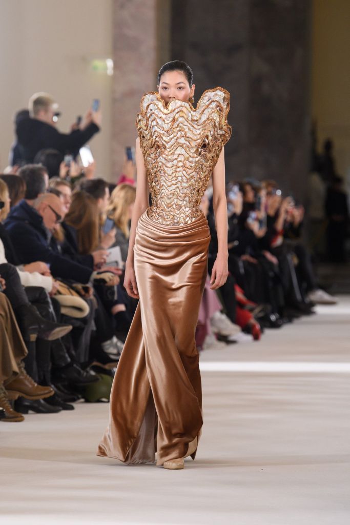 The show notes mention the following, which is suggestive but may be incorrect math given that there were 32 looks in the collection, which is 11 more than there should have been if there were three looks for each of the nine circles of hell, further reinforcing the connection with Dante (even the collection was titled Inferno). However, they are nuances. Roseberry paints a rather forced but ultimately lyrical Dantean metaphor against a collection that is, as usual, spectacular: «There is no heaven without hell, no joy without agony, no ecstasy of creation without the torture of doubt. […] No ascent to paradise is possible without going through fire and experiencing the associated fear. No less, mentioning such a significant literary figure as Dante is a little bit more than audacious («This arrogance of theirs is nothing new,» a disillusioned Dante wrote in the eighth canto), especially if the individual looks in the collection are not so closely related to the themes of the actual literary work referred to. However, since we are discussing a Haute Couture collection and not its paratexts, we can set overt creative hesitances aside and say that Roseberry is still the greatest designer we know of and that his current Couture is among the best in Paris of the Couture week.
