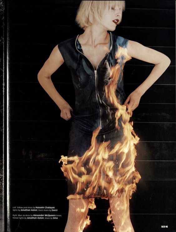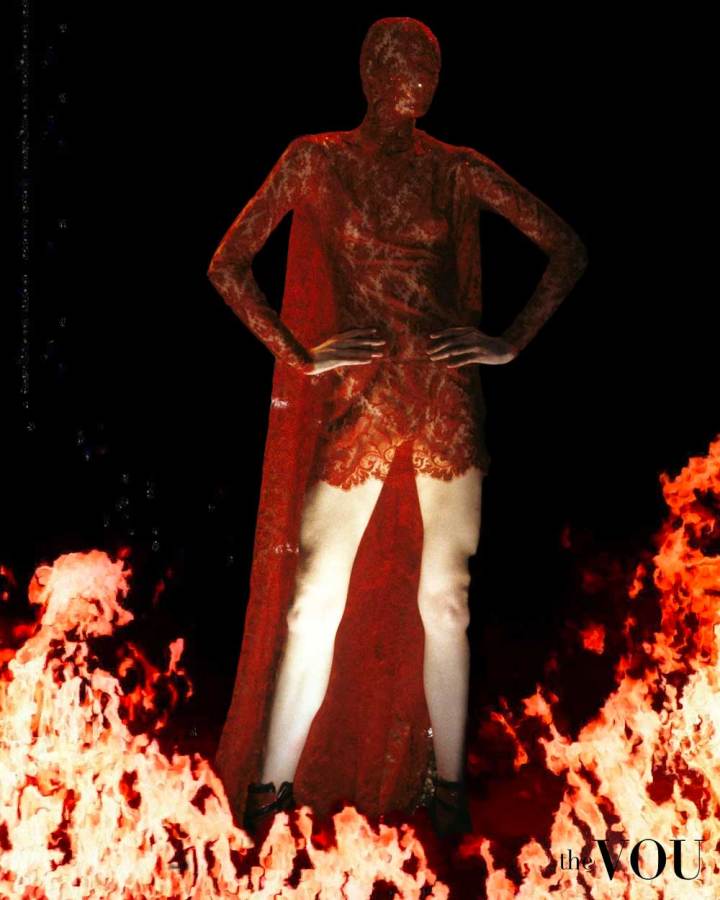 Although fire was discovered by man 400,000 years ago, the fashion industry did not adopt it until the last century. Elsa Schiaparelli was requested to dance by fashion designer Coco Chanel at a gala event at the start of the Second World War. After a few waltz steps and perhaps a few unwelcome jokes, Chanel shoved the Italian designer into a burning candelabra, setting fire to her priceless tree-shaped dress, which was promptly put out by other guests using soda water. The fashion industry is full of fire-related anecdotes, though they are less humorous. Recently, a number of designers have drawn inspiration from flames for their works, such as British designer Robert Wun, who depicted a Schiaparelli-like incident in the form of a purposefully burned wedding dress for his first couture collection, “Fashion Accidents.” Here is a list of all the instances where fire has been the main character, from “fiery graphics” to catwalk fires: