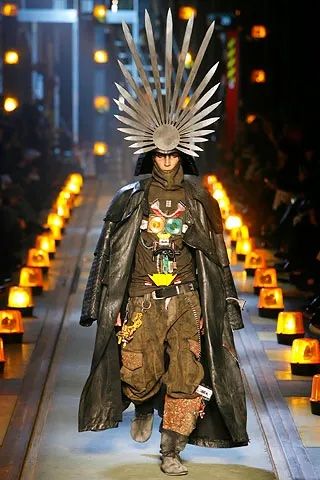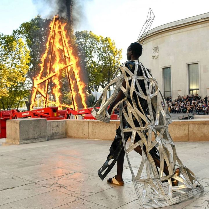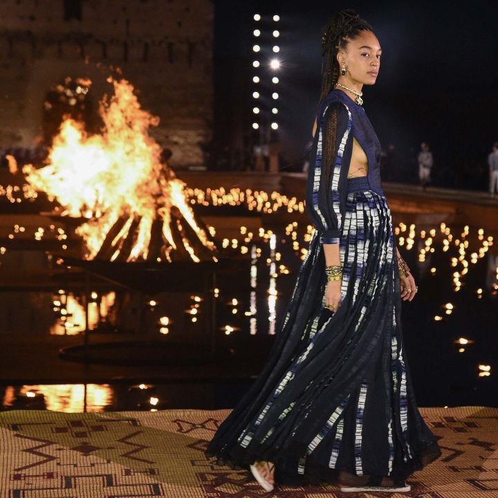 Circus performers like fire eaters, lion tamers, tightrope walkers, and contortionists teach us that sometimes in order to impress people, you need to instill a little bit of terror in them. In recent years, fashion designers have followed suit by setting their catwalks on fire for their shows. The Fall Winter 2007 men’s collection by John Galliano was paraded down a corridor lit by flaming torches to invoke awe and dread. It was inspired by a picture collection by Irving Penn depicting Peruvian tribes. Similar to Galliano, Rick Owens has also used fire to heighten the tension at his shows. In 2012, he lit two thin lines of fire to serve as a backdrop for his catwalk, and in 2019, he lit a bonfire in the middle of the runway. To pay homage to the collections that Yves saint Laurent created for the Maison in the 1960s while making numerous trips to Morocco, Maria Grazia Chiuri revived the same concept in the 2020 Dior resort show by parading the models and their blue and grey-tinged ensembles in a sizable, flaming Marrakech square.