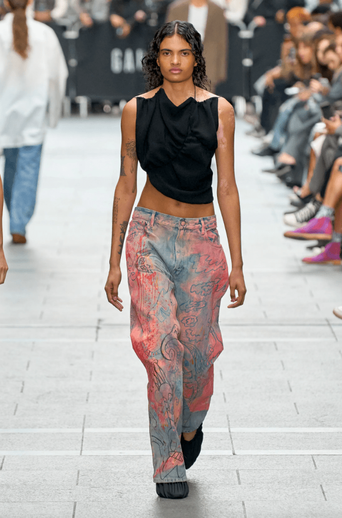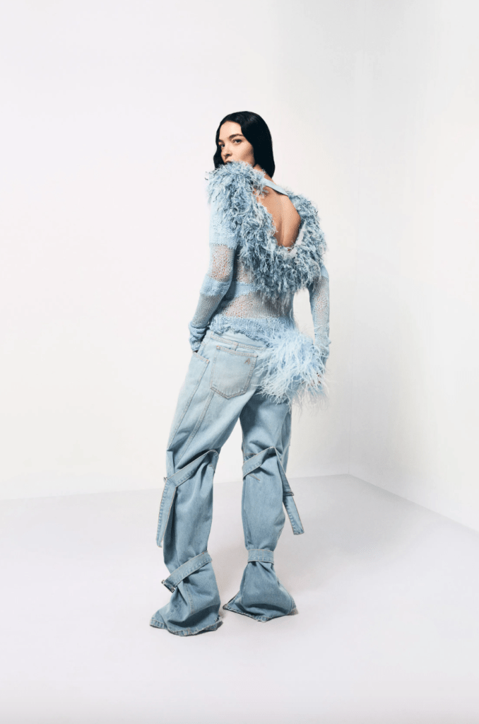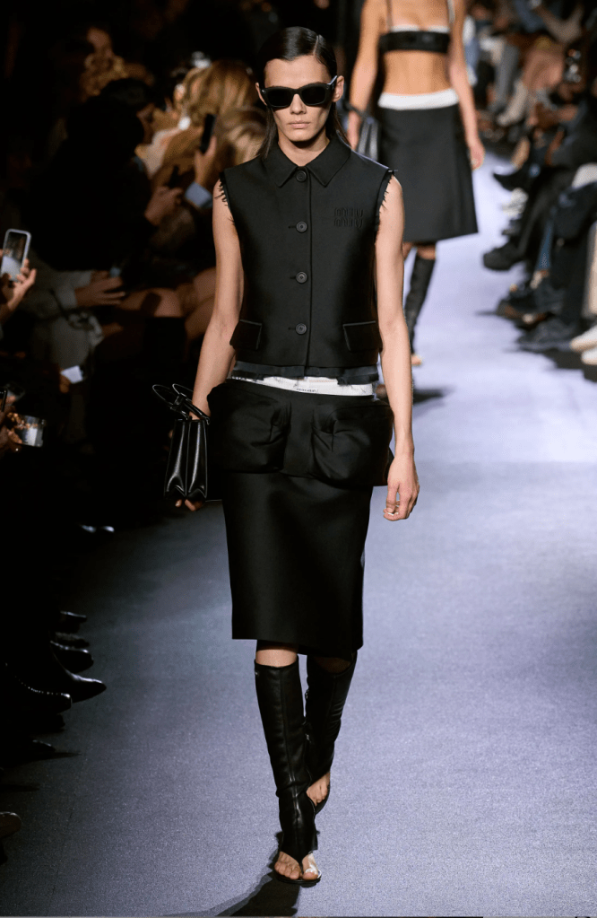 No, it’s not alternative sleaze; rather, it’s a more refined interpretation of the fashions of Saint Laurent, Versace, Khaite, Gauchere, and Khaite. According to research, moto jackets (+5%), acid wash denim (+48%), denim maxi skirts (155%), and cargo trousers (+57%) are the most popular items in this new micro style. Herringbone and checks are clearly preferred in terms of patterns, while the somber colors include burgundy, black, anthracite, and olive green. Who are the role models? Sky Ferreira, Megan Fox, Billie Ellis, and Olivia Rodrigo.