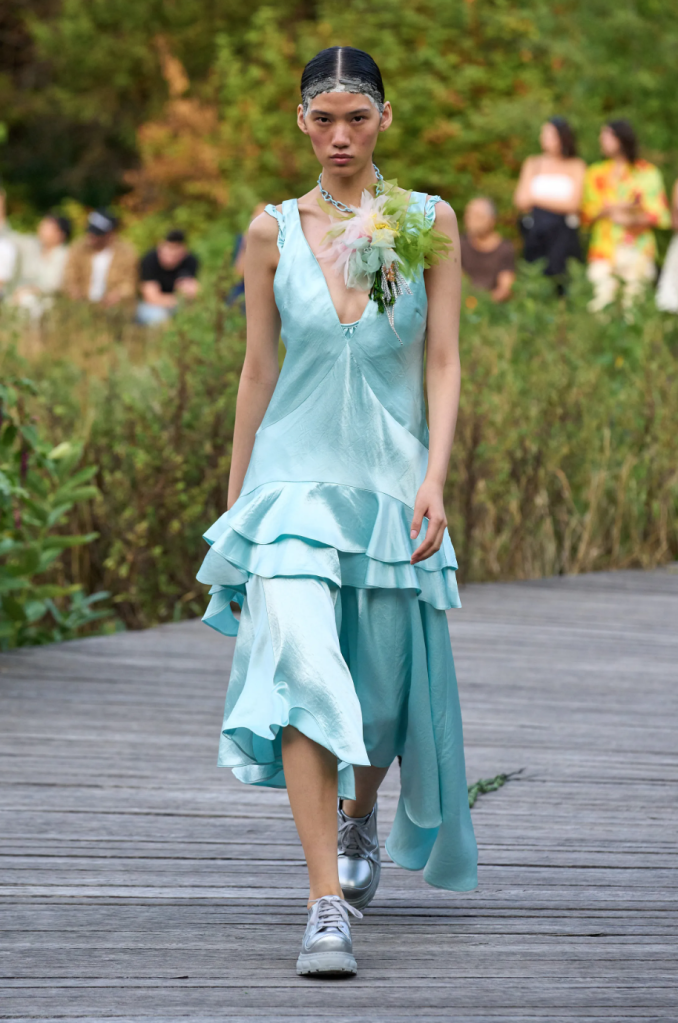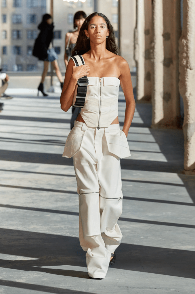 Sophisticated futurism meets utilitarian tradition. The result is an aesthetic that wants puffer waistcoats +62%, cargo trousers +57%, hybrid shoes +31%, bags +31% and bomber jackets +4%. Nylon and twill fabrics are often dazzling. The brands that represent the “core” well are Blumarine, Andrea Adamo, Christian Dior, The Attico and Dion Lee. This is a trend that has also been seen in recent seasons, but it is influenced by new technologies. The best example is hybrid shoes, a mix of trainers and walking shoes, and Crocs and heels.