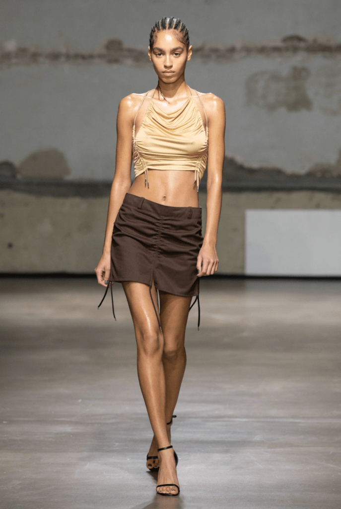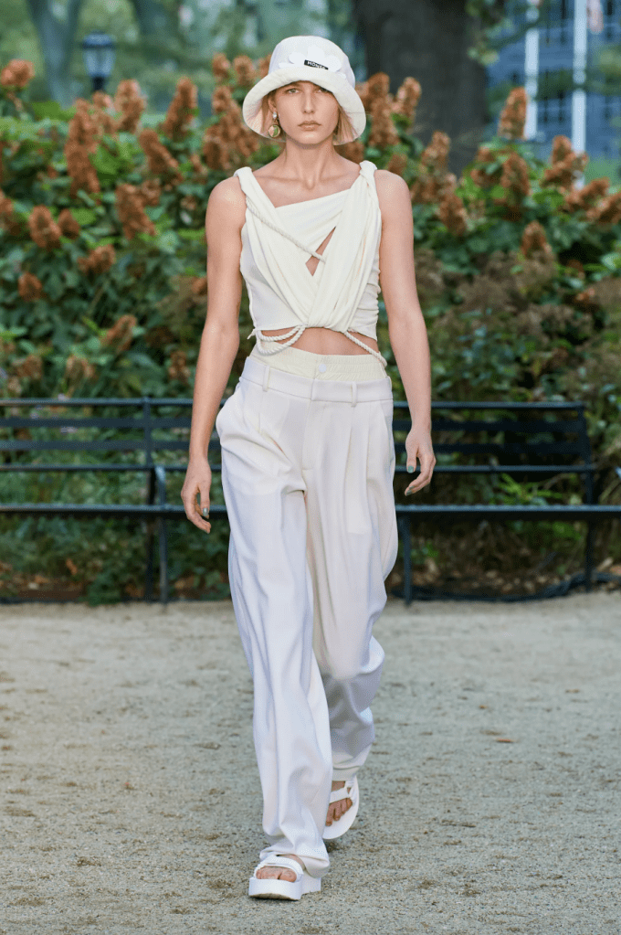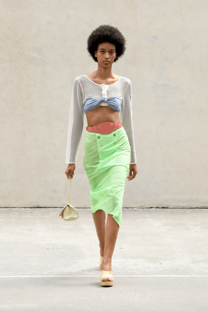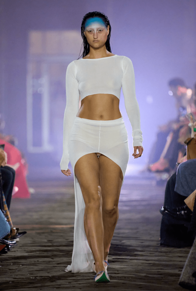 Atlein’s ruched and intangible crop tops, Chloé’s immaculate but studded look, Coperni’s crop top, denim jacket and low-waist trousers, and Courrèges’ monochrome top, leather jacket and long trousers.The long-sleeved, shaded effect of Etro, the mini and high-hooded mini by Givenchy, the crochet and waist band of Hermès, the sheer effects and extra-long sleeves of Marni, the color overlays at Maryam Nassir Zadeh, the interplay of materials and laces for the pristine white of Monse.