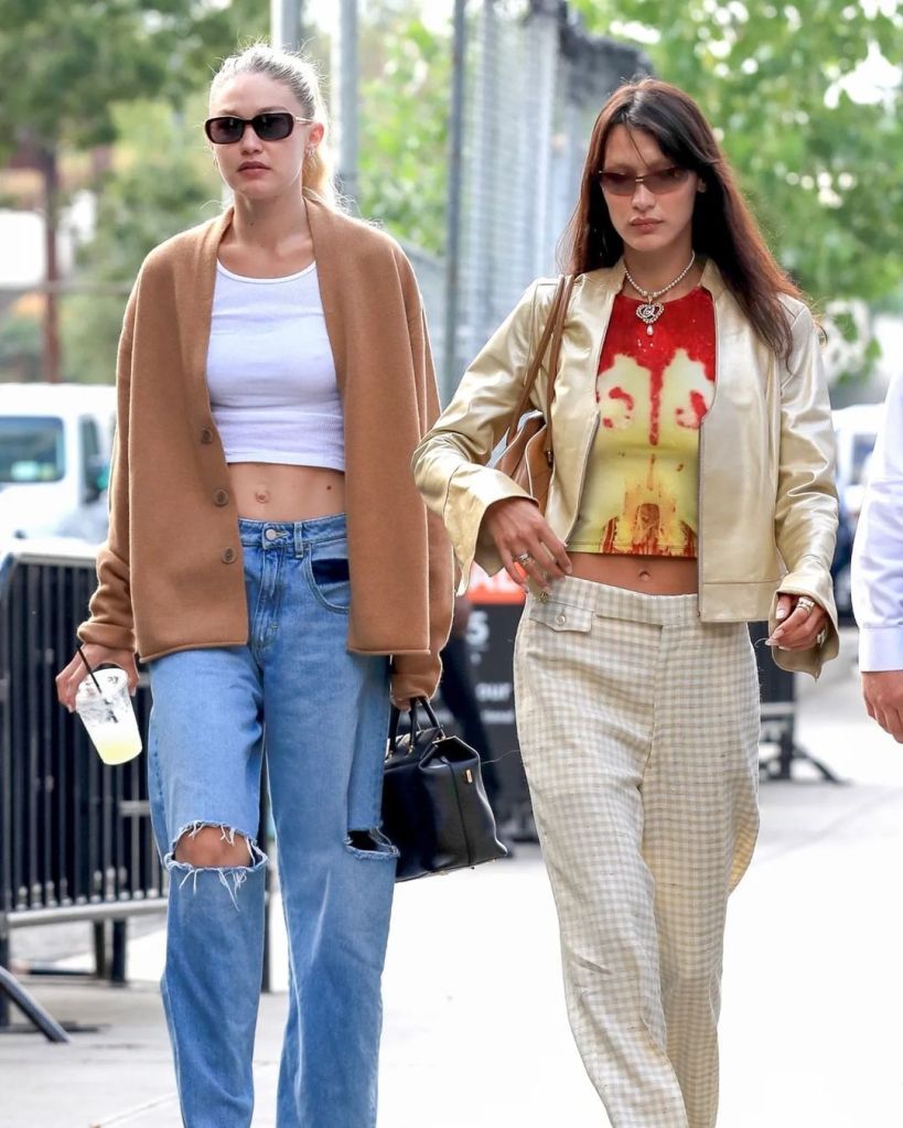 There are those who make it a cult piece of warm-season apparel and those who refuse to give it up, even when the temperatures are no longer polar but still “cool” in the winter. The crop top, which has come and gone since the 2000s, is once again becoming a cult item of clothing this year. It can be worn subtly with layers underneath or in all its little fullness. How will you wear it? Bella Hadid opts for a white, minimalistic dress and pairs it with spirited, sunflower-yellow pants; Elsa Hosk completes it with clogs, a high belt, and a single-breasted blazer; The Hadid sisters pick psychedelic makeup for Bella and checked pants, while Emrata experiments with a denim jacket, trousers, and sneakers. While Gigi completes the small top with a pair of old jeans and a camel cardigan, cargo pants and slim shoulder pads for Hailey Bieber, a cover-up skirt and jeans for Iris Law, and a manly shirt and pants with pennies for Kaia Gerber.