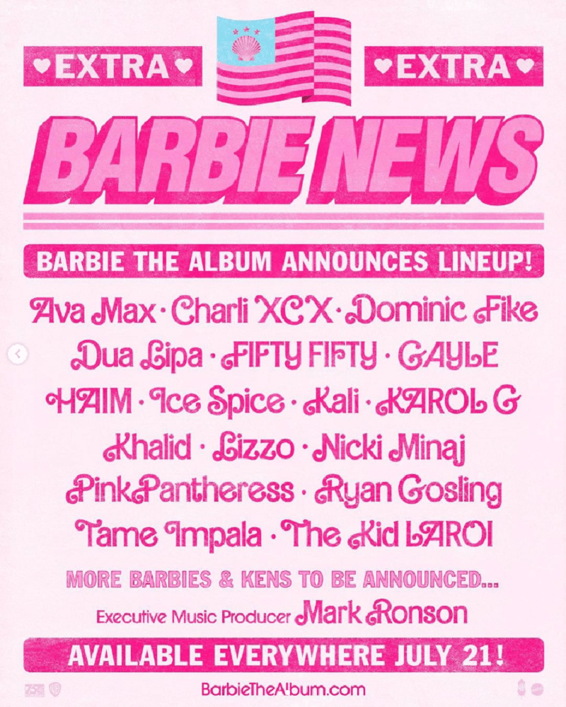 The Barbie soundtrack stands as a testament to audacious artistry, drawing from a mesmerizing array of artists who artfully capture the very essence of Barbie’s realm. A harmonious convergence of musical brilliance unfolds, as Khalid, The Kid LAROI, HAIM, Tame Impala, and Dominic Fike lend their unique voices, crafting an extraordinary tapestry of sounds that transcends genres and captivates hearts.