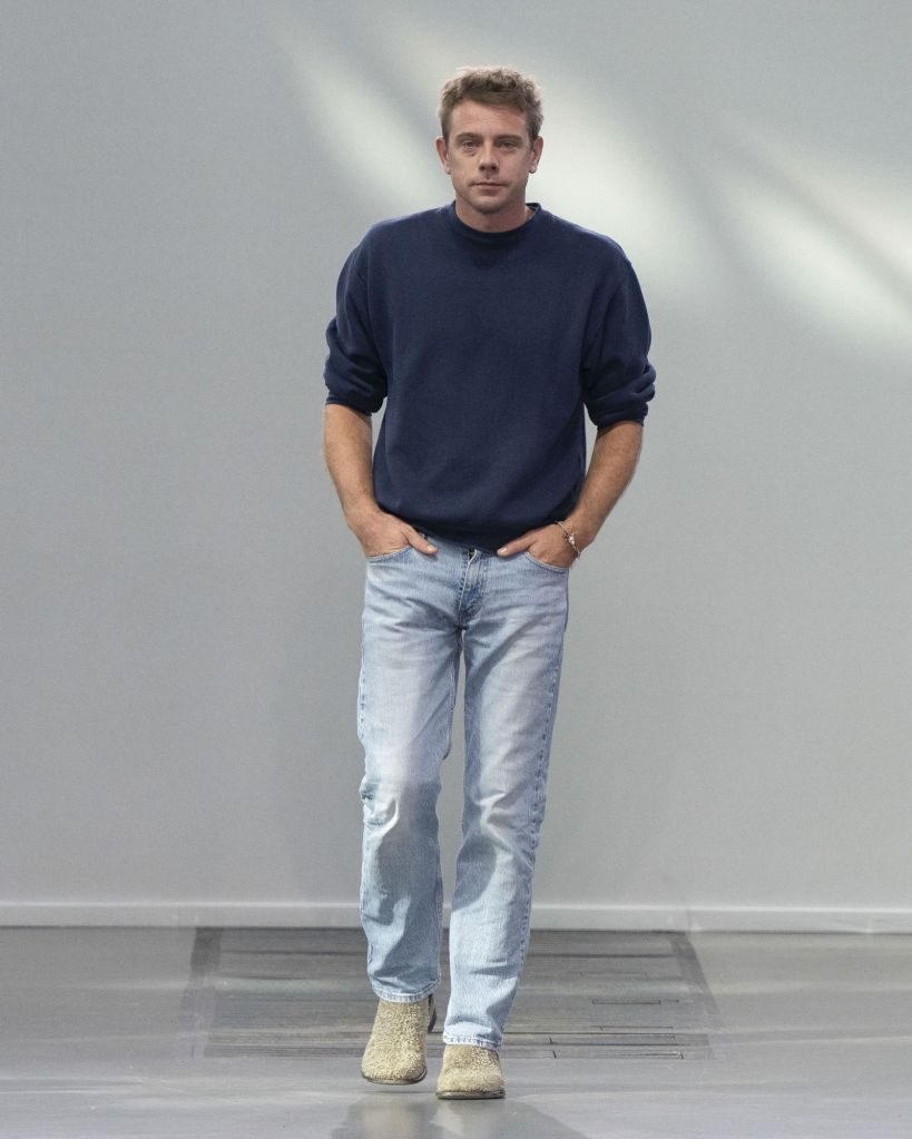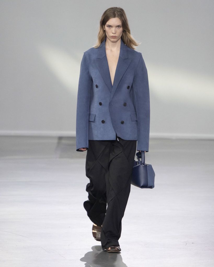 Electric blue hues radiated with an extraordinary vibrancy, complemented by the striking intensity of orange. Proportions were deliberately exaggerated, and silhouettes embraced a comically angular essence. The initial impressions, akin to the teaser offered through the invitations, whimsically appeared as if they had been crafted from pliable plasticine. At first glance, the collection may have appeared as a playful mockery of prevailing fashion sensibilities, seemingly trapped betwixt the realms of hoodies and khaki trousers. Yet, as the padded ensembles made their entrancing procession on the runway, Anderson’s benevolent jest came into full view.