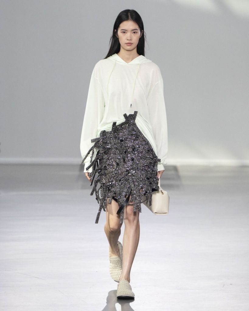 In a manner reminiscent of the brand’s recent showcases that seamlessly blended playful footwear and garments with meticulous attention to detail and an unmistakable commitment to sartorial excellence, JW Anderson’s SS24 collection emerged as a delightful bouquet of astonishing ensembles.