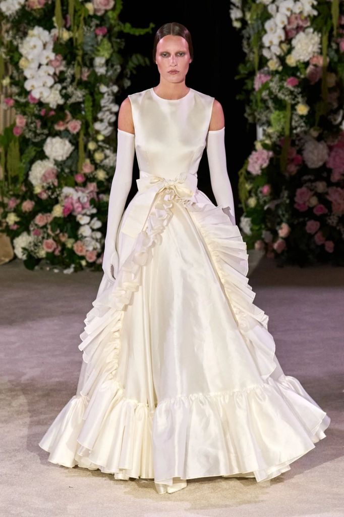 In this sartorial symphony, there exists a gown to resonate with every discerning taste and unique personality. From Simone Rocha’s opulent confections to Richard Quinn’s vintage nostalgia and David Koma’s mini masterpieces, thoughtfully paired with veils, the choices are as diverse as they are enchanting. Now, may I inquire, which amongst these bewitching ensembles captures your heart as a favorite?