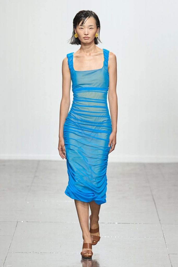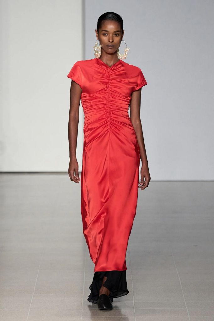 Roksanda, on the other hand, embraced the raw aesthetics of the Barbican Centre’s brutalist architecture, mirroring the essence of her collection. Her designs seamlessly blended with the architectural backdrop, creating a harmonious visual narrative.