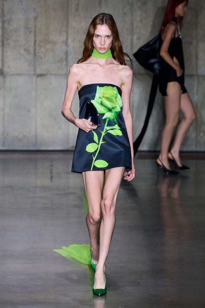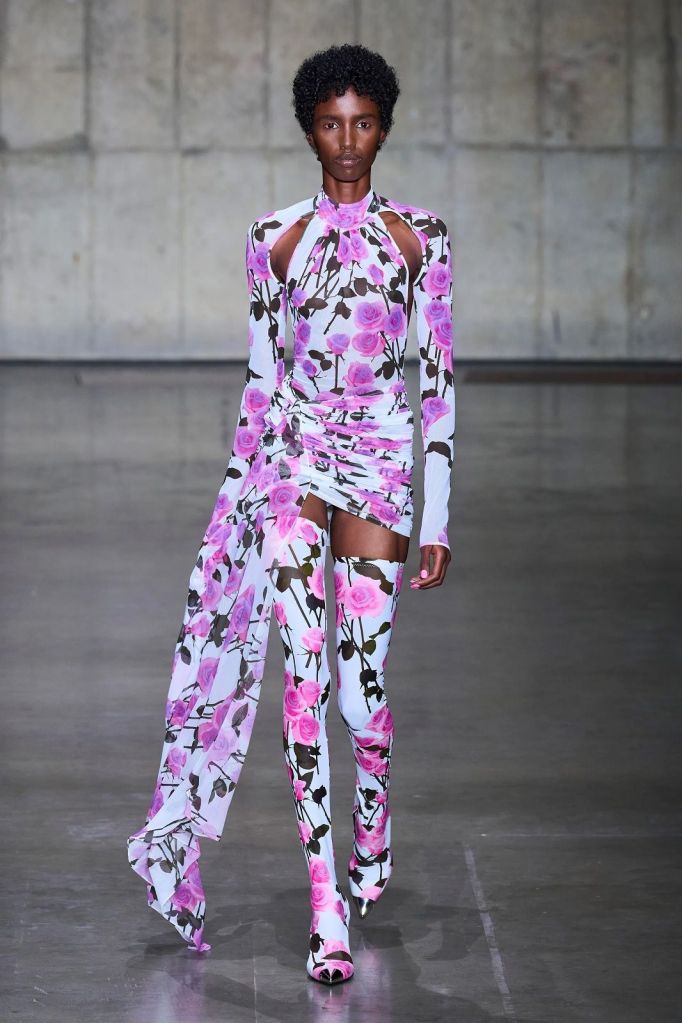 In stark contrast, David Koma explored the seductive facet of the rose, translating it onto tops and dresses. Yet, he ventured beyond conventional uses by incorporating it as both an accessory and a template for shaping skirts, adding a captivating twist to his creations.