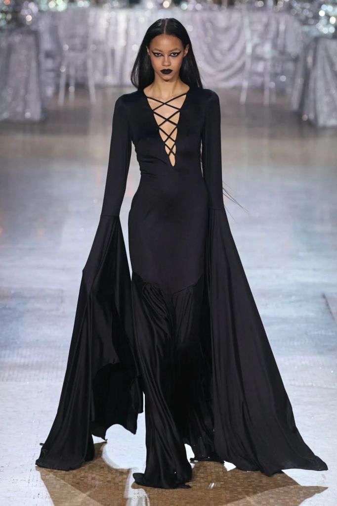 So, why not embrace the magic of one night? Reach for the glitter, the dark lipstick, the eyeliner, kohl, and powder, and transform yourself into a bewitching witch, a fearsome demon, a timeless vampire, or a spectral ghost. With the influence of the runway as your guide, your options are endless. Choose from these 20 Halloween costume ideas inspired by the recent runway trends and make this Halloween a night to remember. Embrace the allure of high fashion and let your inner darkness shine on this bewitching evening.