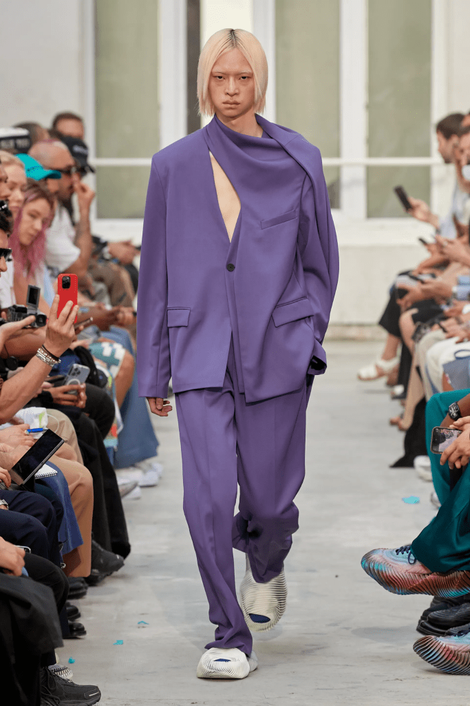 Fashion, as we know, thrives on novelty, and this fervor extends to the spectrum of colors as well, as we observed during the era of Bottega Veneta under Daniel Lee‘s reign. In this age of prevailing quiet luxury, designs and color palettes have assumed a more minimalist aesthetic, creating a yearning for novelty amidst the serene. Purple, not only rarely featured, thus casting an air of novelty when it graces the runway, but also boasts the remarkable ability to harmonize with a myriad of skin tones, contingent upon its specific hue.