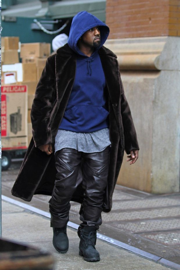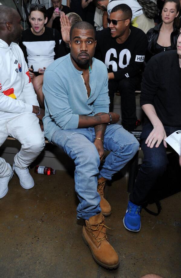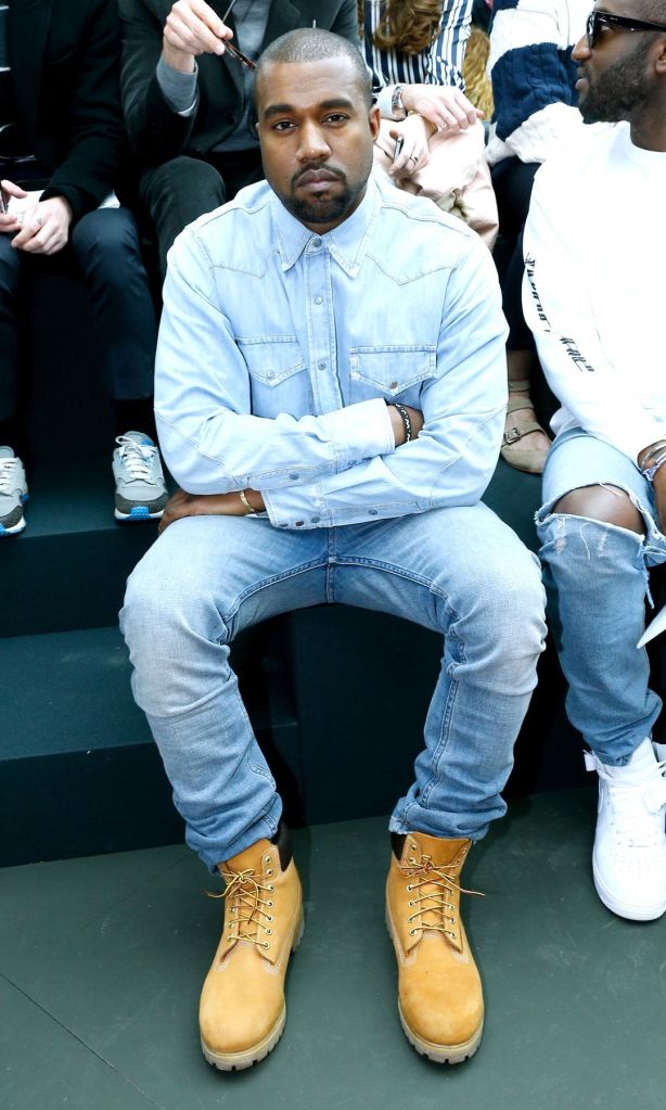 During those years, Kanye consistently elevated Timberlands, pairing them with elevated pieces that transcended traditional hip-hop fashion. In 2012, he combined them with a Pyrex Vision t-shirt and lacquered Balmain pants. In 2013, Timberlands adorned his ensemble at the FW14 Celine show, and by 2015, he embraced fur once more, this time coupled with Bottega Veneta leather pants. Notably, this period aligned with Abloh’s role as the creative director of West’s agency, Donda, where the creative vision of transforming working-class garments into luxury items took shape.