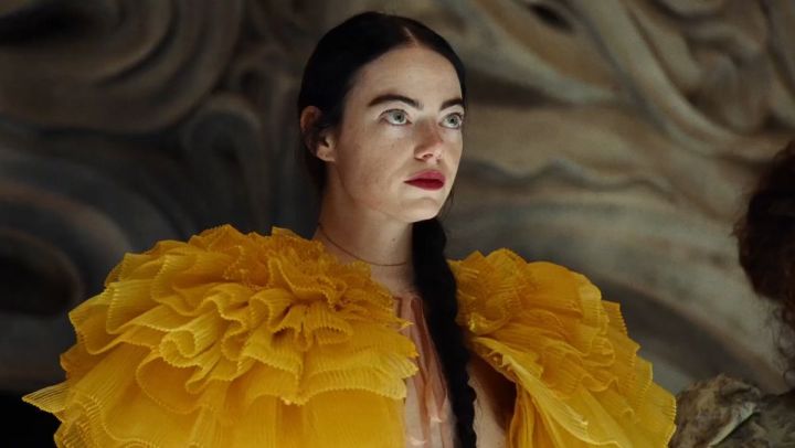 As Waddington reveals in an interview, Bella’s Portuguese wardrobe mirrors her youthful rebellion against societal impositions. Duncan Wedderburn, her lover, begrudgingly witnesses her newfound spirit of independence, culminating in a restaurant scene where Bella, adorned in the film’s brightest yellow, dons a dress embellished with oversized bows. This sartorial choice symbolizes Bella’s defiance, overshadowing conventions with her vivid presence, as she navigates the complexities of self-exploration and challenges societal expectations with grace and audacity.