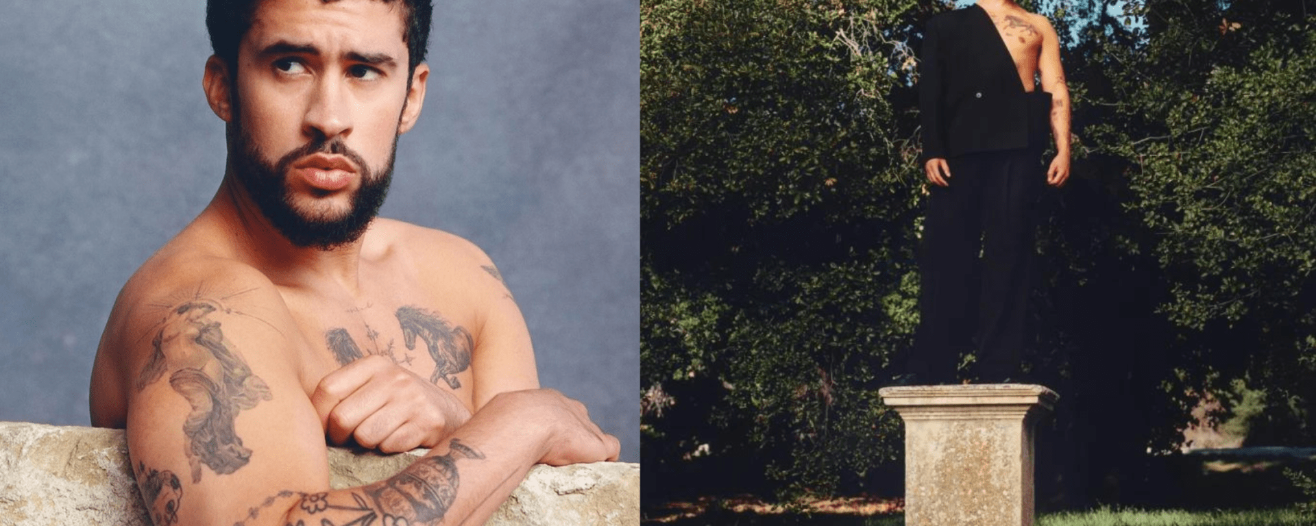 Captured through the lens of Theo De Gueltzl and expertly styled by Katie Burnett, Bad Bunny takes on various personas, showcasing the diverse range of sculptural menswear from the collection. From the sophistication of a streamlined grey suit to the boldness of a strapless black jumpsuit, each ensemble is a masterpiece in its own right.