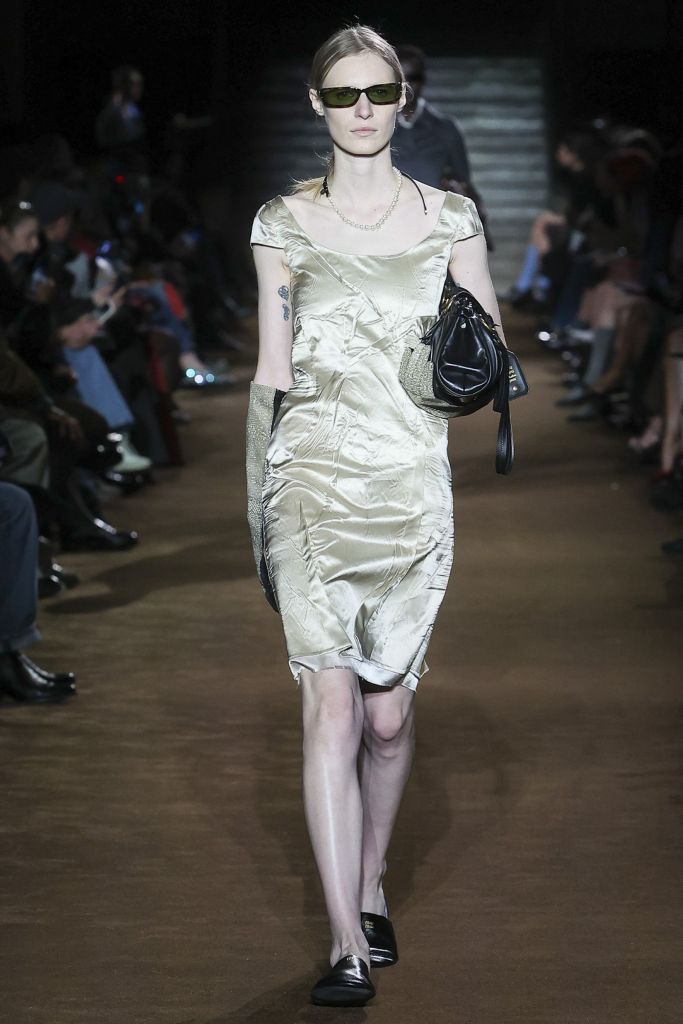 The collection introduces charmingly crumpled satin sheaths, offering a tactile experience. These dresses stand in contrast to accessories that exude a sense of safeguarding. Playful details emerge in black sheath dresses with strategic cut-outs above the buttocks and pants crafted from the same cotton poplin as the shirts. The result is a fusion resembling a uniform or pajamas, showcasing generous proportions that convey the cool practicality of those embracing functional minimalism while letting accessories speak volumes of creativity.