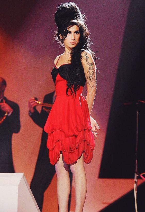 Amy Winehouse’s reinterpretation of the 1950s pin-up aesthetic has left an indelible mark on fashion and music history. While her meticulous attention to detail, from adorning her beehive hairstyle with flowers, oriental clips, and bandanas, garnered attention, it was her ability to decontextualize the look that truly set her apart. With unmatched elegance, she transformed the cocktail dress into a captivating costume, showcasing her unparalleled sense of style.