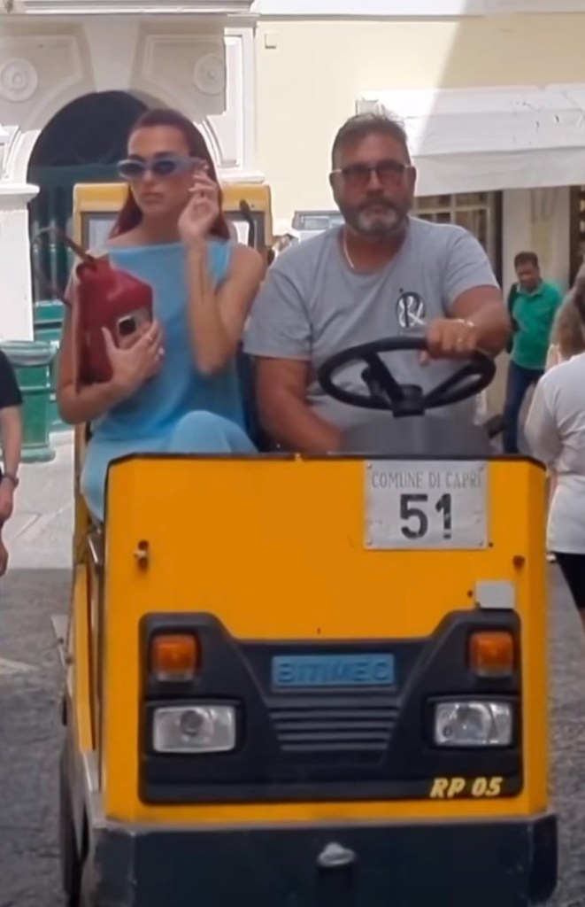 Spotted navigating the island’s picturesque streets in an unusual yet chic vehicle, Dua made her way to the event with her signature style and grace. Her impeccable fashion sense was on full display, capturing the attention of onlookers and fashion enthusiasts. It was impossible to miss her as she moved through the crowd, radiating confidence and charm.