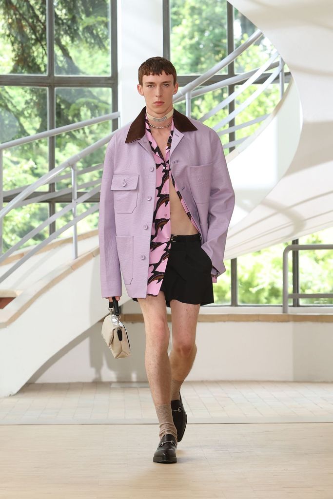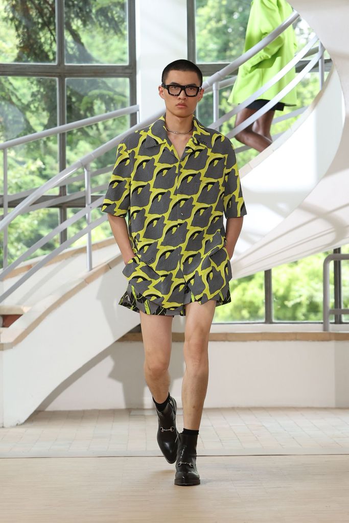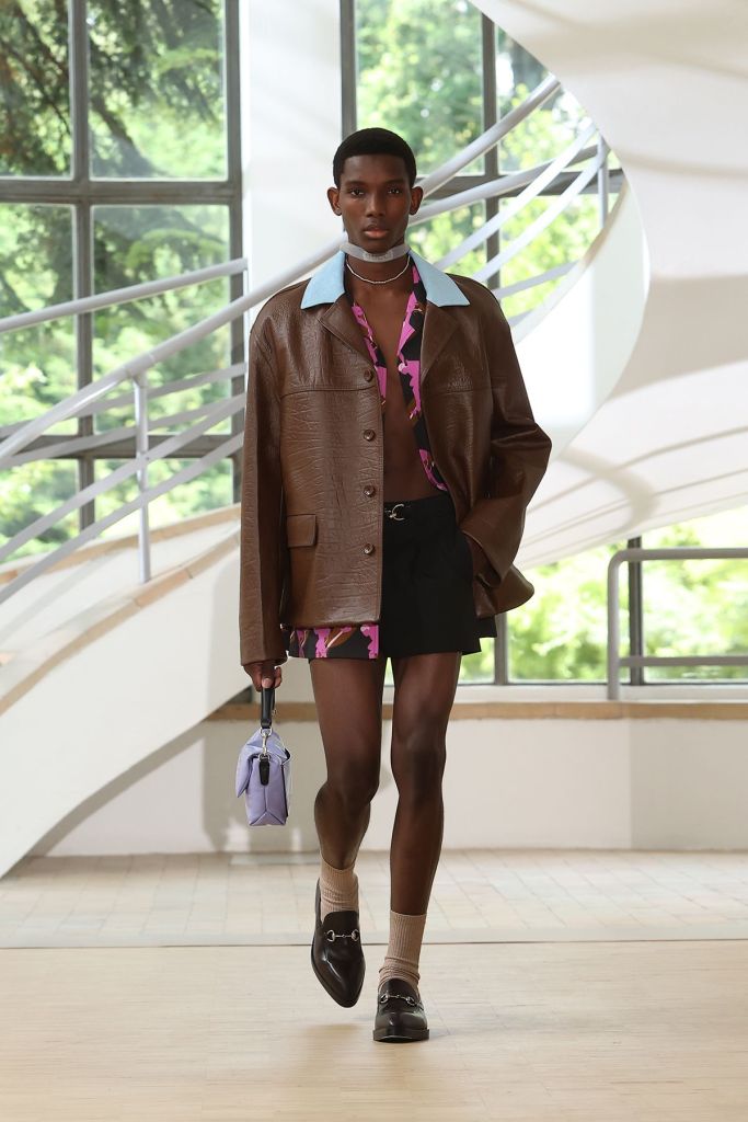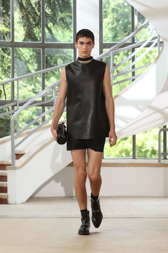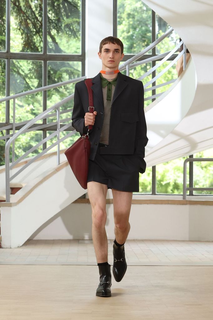 The SS25 Gucci show, held yesterday at the Triennale di Milano, was a vibrant celebration of encounters and freedom, weaving together urban and coastal influences into a tapestry of stylish sophistication. Guided by Sabato De Sarno, the collection marked a significant evolution for the maison, harmoniously blending city chic with the relaxed essence of beach life. The show commenced with a series of tailored pieces featuring clean lines and a structured yet airy feel, accentuated by the prevalent ultra-short shorts throughout the collection. The tailoring was exemplary, with single-breasted jackets showcasing high lines and pressed sleeves, reflecting Gucci’s masterful craftsmanship. The collection also featured double-breasted designs in lightweight poplin, presenting a refreshing, deconstructed take on the minimalist elegance De Sarno is known for.