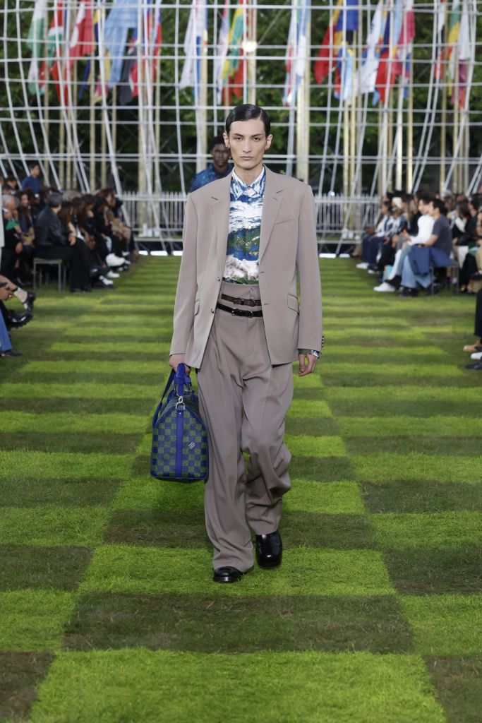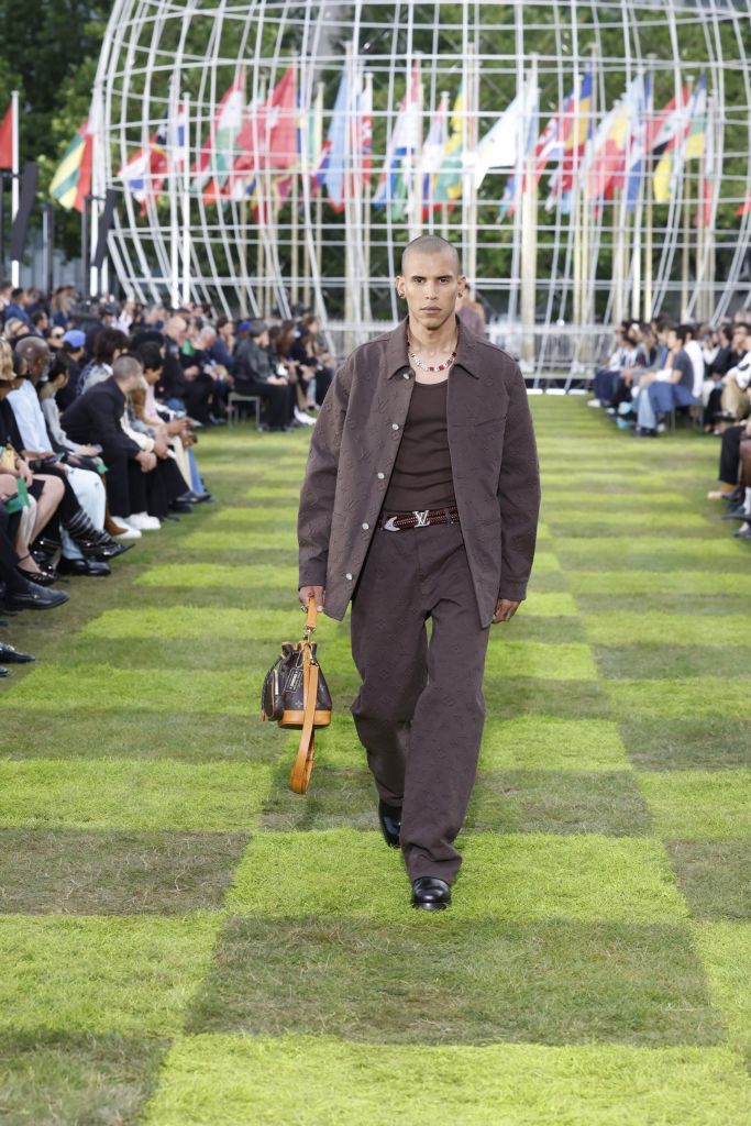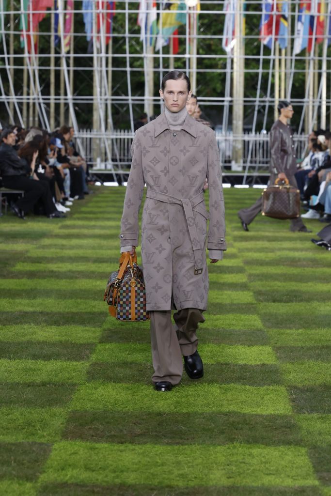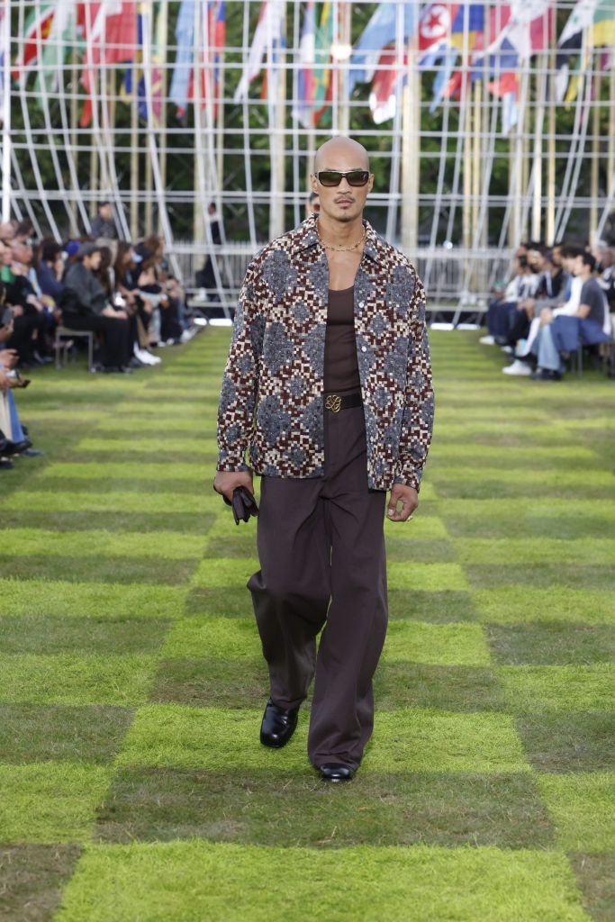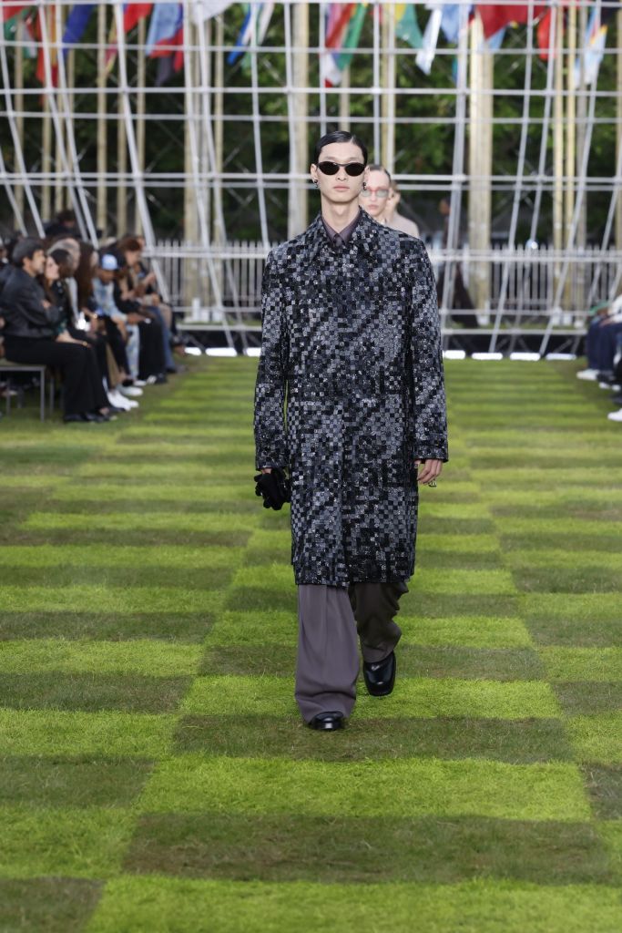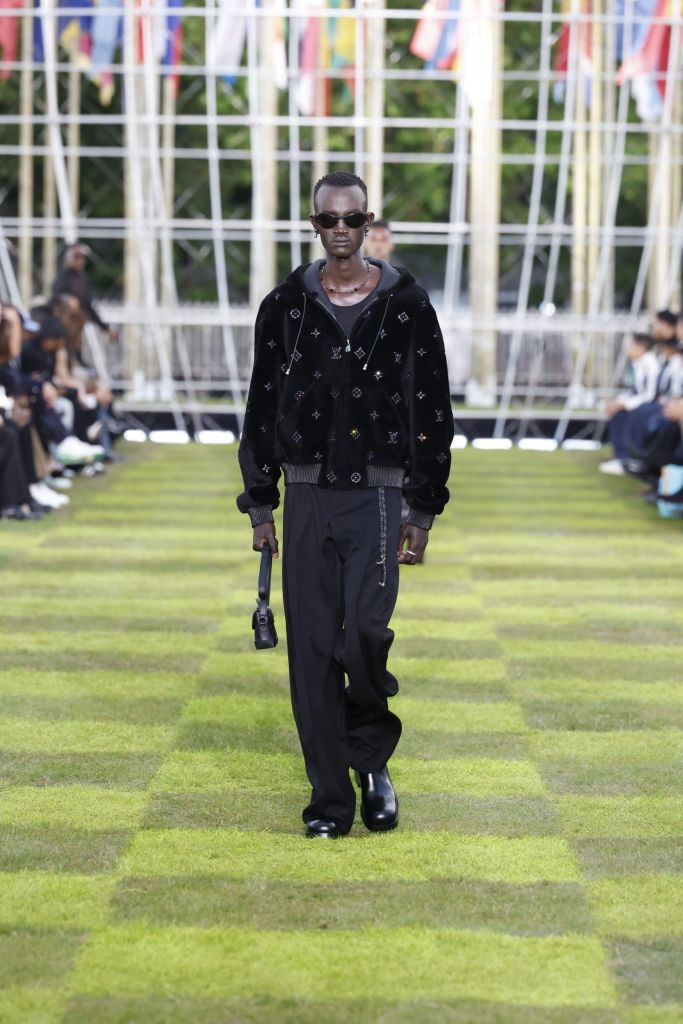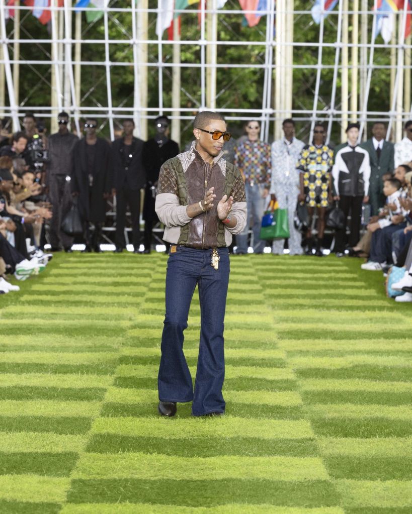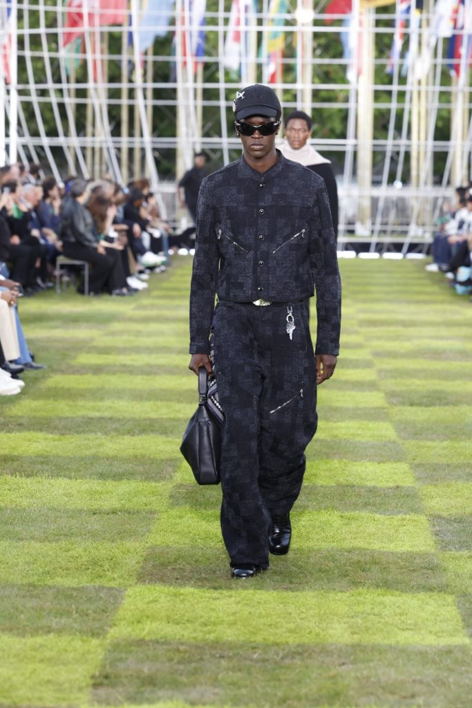 It’s hard to overlook the show as a testament to Louis Vuitton’s prowess, showcasing not only the exceptional skill of its atelier but also an almost radical benevolence that the brand has embraced since the days of Virgil Abloh. The underlying message is that Louis Vuitton excels not only in quality but also in moral values—if such a notion applies in the fashion industry. Few brands could pull off such a display of confidence and capability. Pharrell’s approach to universalism, likened to an ecclesiastical idea of uniting all people under a common symbol or monogram, may lack subtlety, but his talent in conveying the brand’s essence is undeniable. His ability to orchestrate and harmonize both macro and micro details in a show that transcends a mere fashion presentation to become a comprehensive spectacle is truly impressive.
