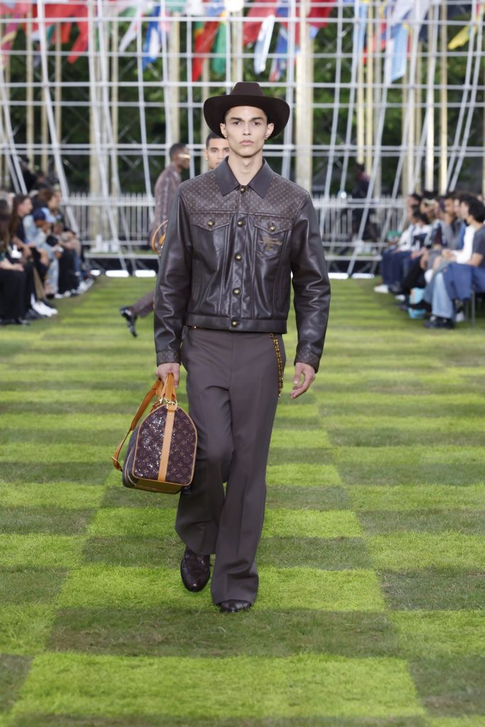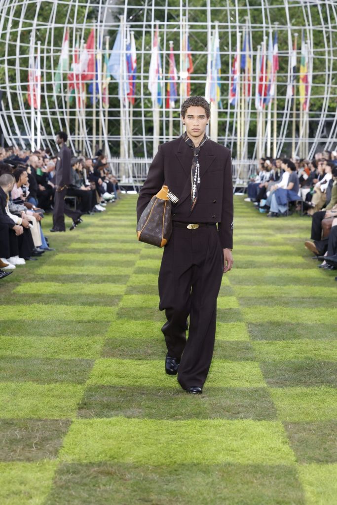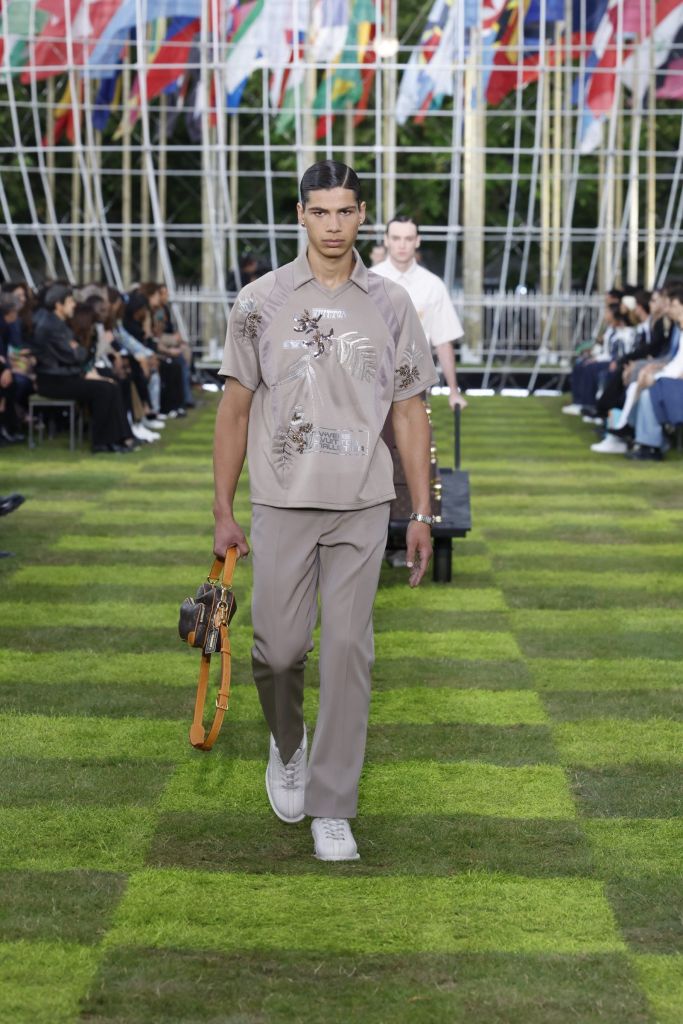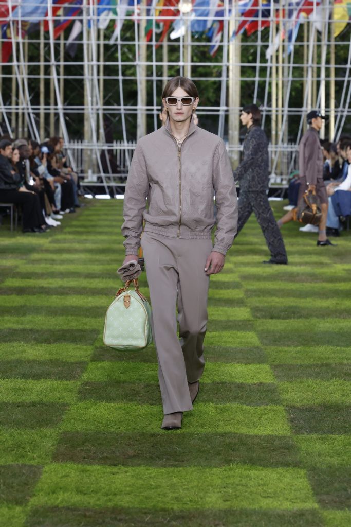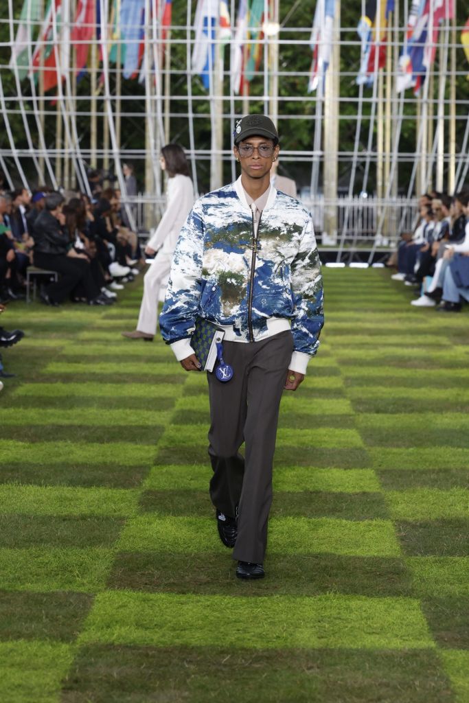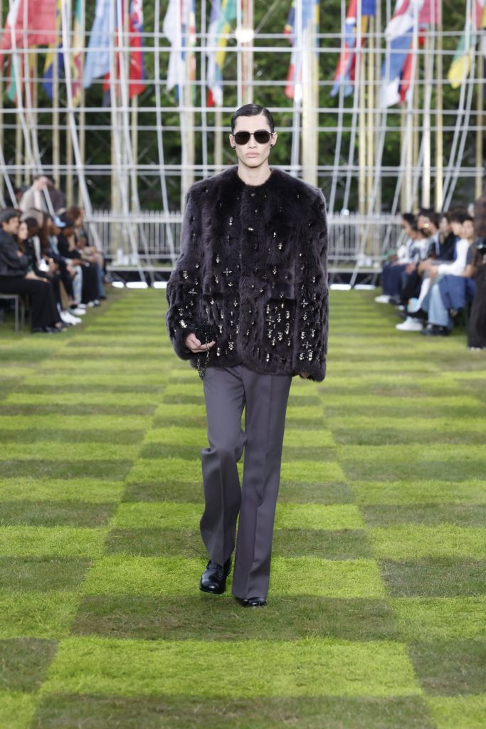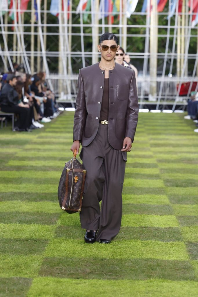 It’s hard to overlook the show as a testament to Louis Vuitton’s prowess, showcasing not only the exceptional skill of its atelier but also an almost radical benevolence that the brand has embraced since the days of Virgil Abloh. The underlying message is that Louis Vuitton excels not only in quality but also in moral values—if such a notion applies in the fashion industry. Few brands could pull off such a display of confidence and capability. Pharrell’s approach to universalism, likened to an ecclesiastical idea of uniting all people under a common symbol or monogram, may lack subtlety, but his talent in conveying the brand’s essence is undeniable. His ability to orchestrate and harmonize both macro and micro details in a show that transcends a mere fashion presentation to become a comprehensive spectacle is truly impressive.