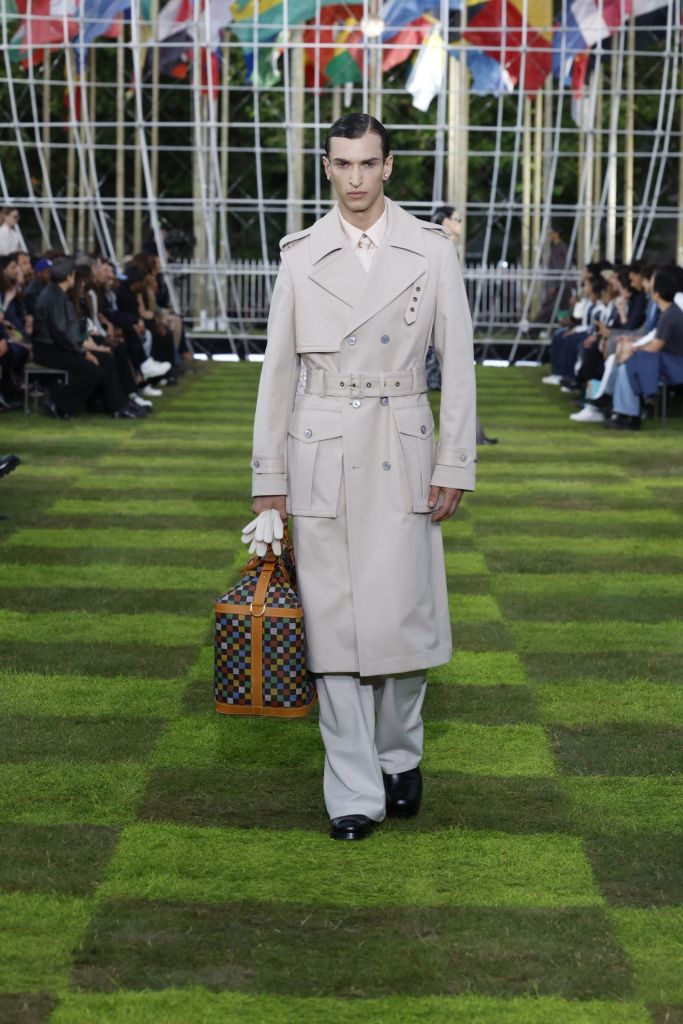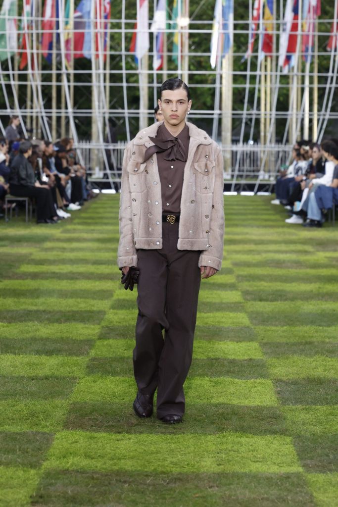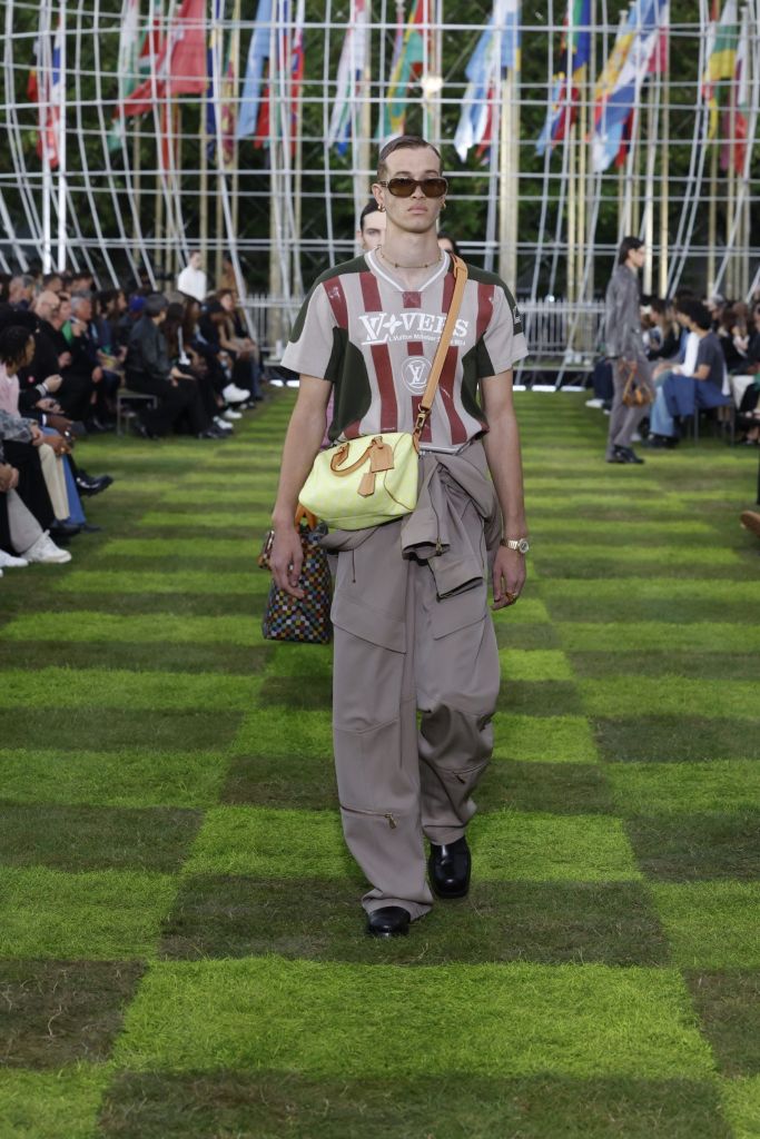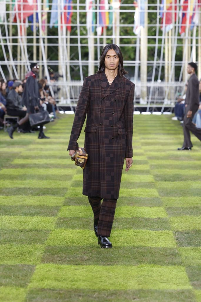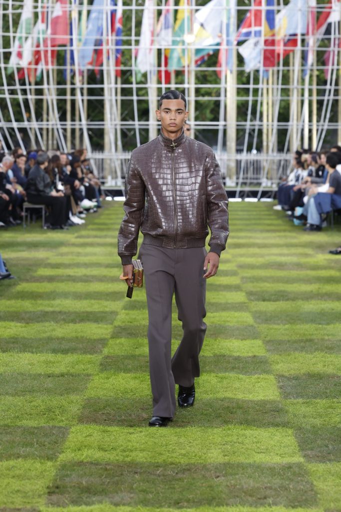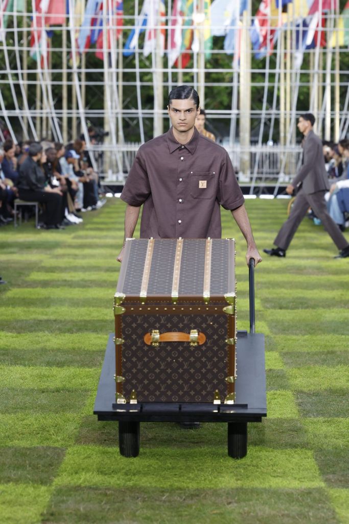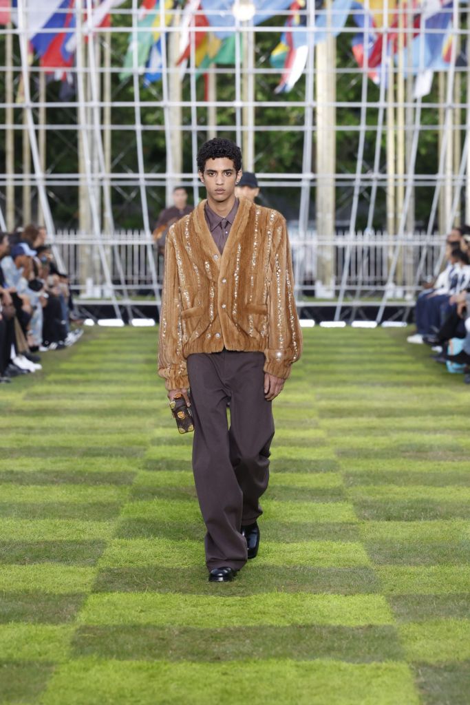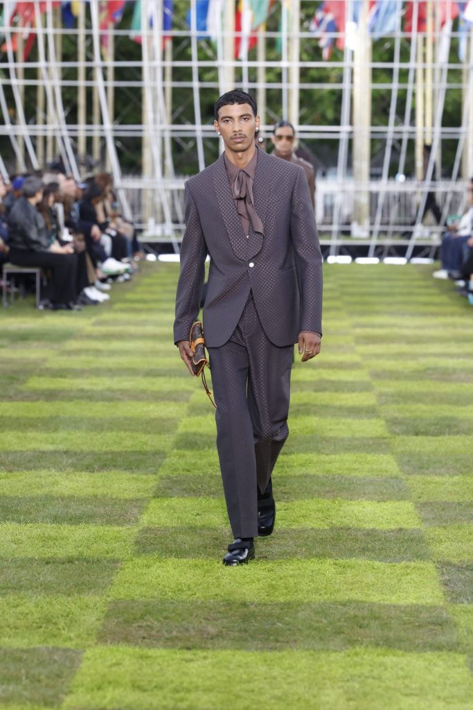 It’s hard to overlook the show as a testament to Louis Vuitton’s prowess, showcasing not only the exceptional skill of its atelier but also an almost radical benevolence that the brand has embraced since the days of Virgil Abloh. The underlying message is that Louis Vuitton excels not only in quality but also in moral values—if such a notion applies in the fashion industry. Few brands could pull off such a display of confidence and capability. Pharrell’s approach to universalism, likened to an ecclesiastical idea of uniting all people under a common symbol or monogram, may lack subtlety, but his talent in conveying the brand’s essence is undeniable. His ability to orchestrate and harmonize both macro and micro details in a show that transcends a mere fashion presentation to become a comprehensive spectacle is truly impressive.