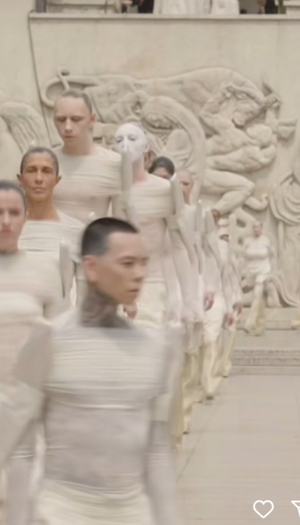 The show, set against the dramatic backdrop of the Palais de Tokyo fountain, features a grandiose “art colossal performance” underscored by the amplified Allegretto from Beethoven’s Symphony No. 7, conducted by Christian Thielemann with the Vienna Philharmonic. This setting pays homage to Hollywood’s golden age, evoking the grandeur of Cecil B. DeMille’s epic biblical films like “The Sign of the Cross” (1932) and historical spectacles like “Cleopatra” (1934) starring Claudette Colbert.