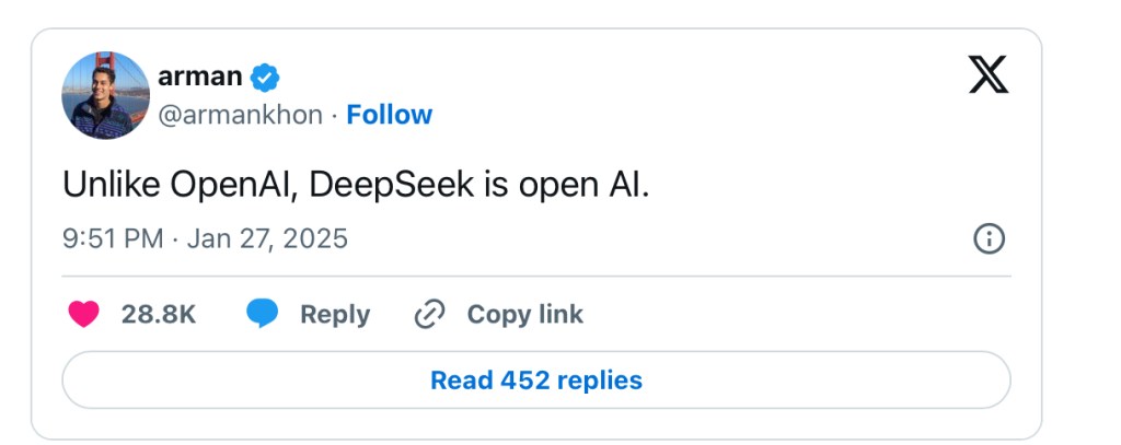 The emergence of DeepSeek coincides with a tense political environment, especially between the United States and China. This comes just a week after the U.S. Senate debated a potential ban on TikTok, accusing the app of sharing user data with the Chinese government. During a press conference on Monday, newly-elected President Donald Trump made a remark. He said DeepSeek’s rise should act as a “wake-up call” for American tech companies. He emphasized that if China could develop such a sophisticated AI model at a lower cost, it’s a “win.” This would greatly benefit the U.S.