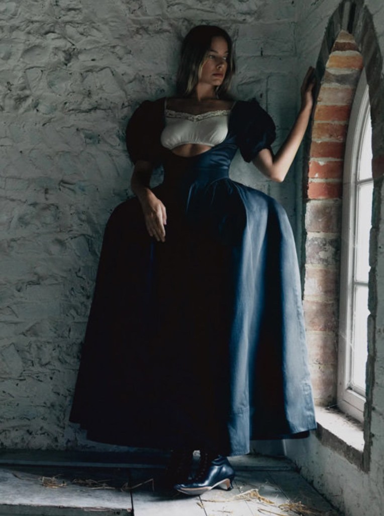 The mood board for Robbie’s costumes is a study in contrasts and artistic ambition. Royal portraits of Princess Sissi provide romantic and ethereal inspiration, while Mugler’s 1990s haute couture lends bold, sculptural lines. Early-2000s Dolce & Gabbana runway shows influence color and pattern, while Scarlett O’Hara’s iconic gowns bring theatricality and drama. Even PVC-wrapped pin-up editorials make an appearance, challenging the audience’s expectations of what a literary costume should be.
